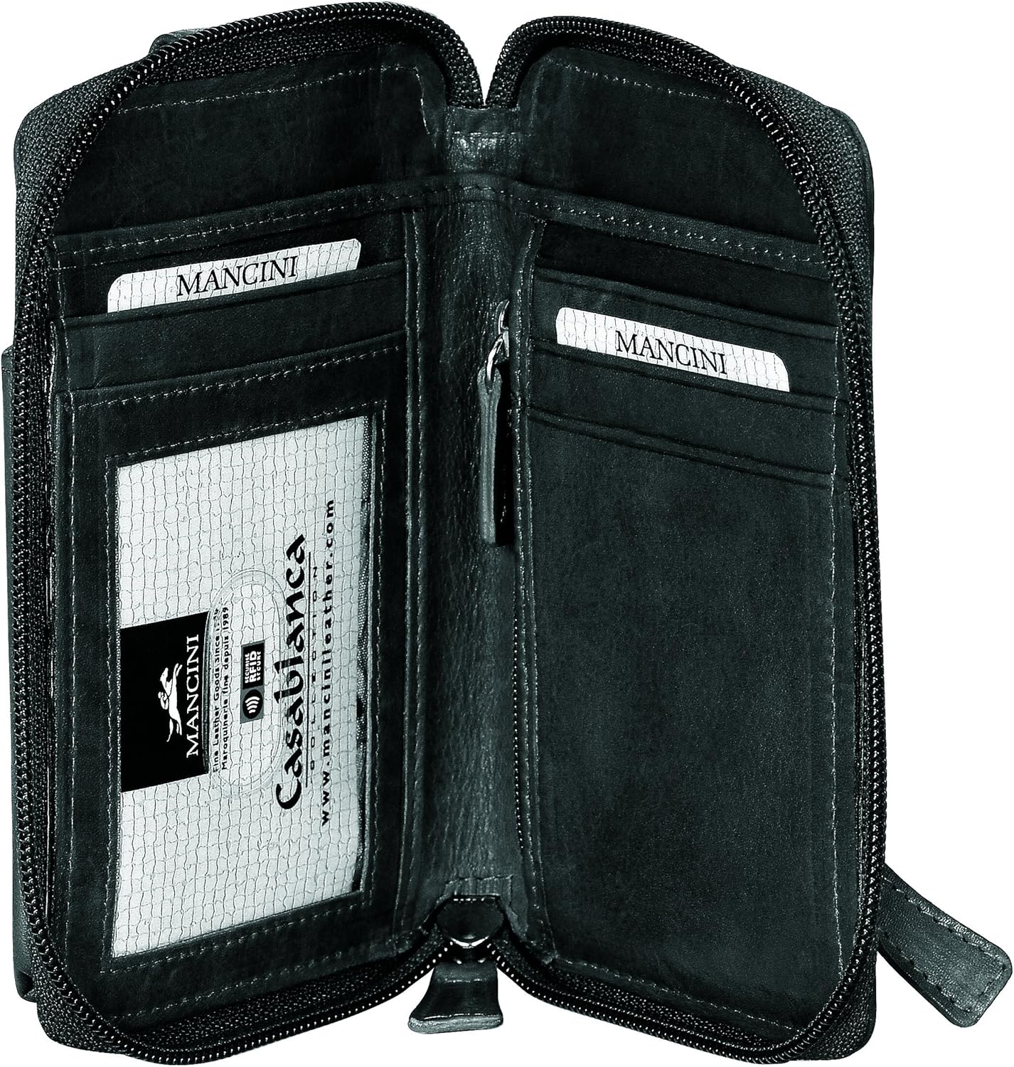 Our CASABLANCA Collection celebrates the fusion of traditional and contemporary styling. Effortlessly urban-chic with a laid back attitude. Featuring the latest RFID wave blocking technology to ensure your data and cards are safe. The special metallic layers integrated into the card slots prevent thieves from electronically reaching into your wallet. Finely hand-crafted in top grain leather. This unique wallet features a full zipper to keep contents secure as well as a front cell phone pocket.