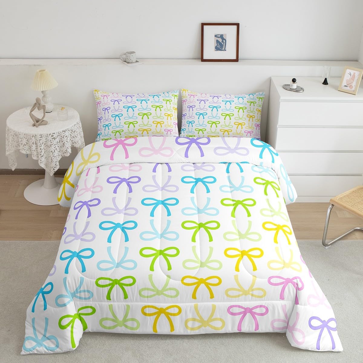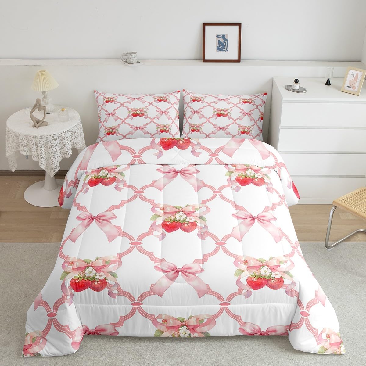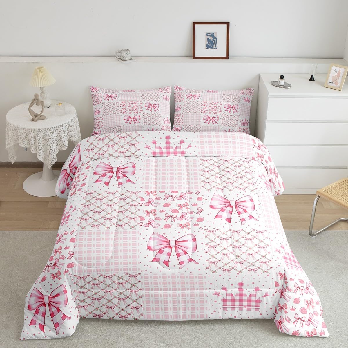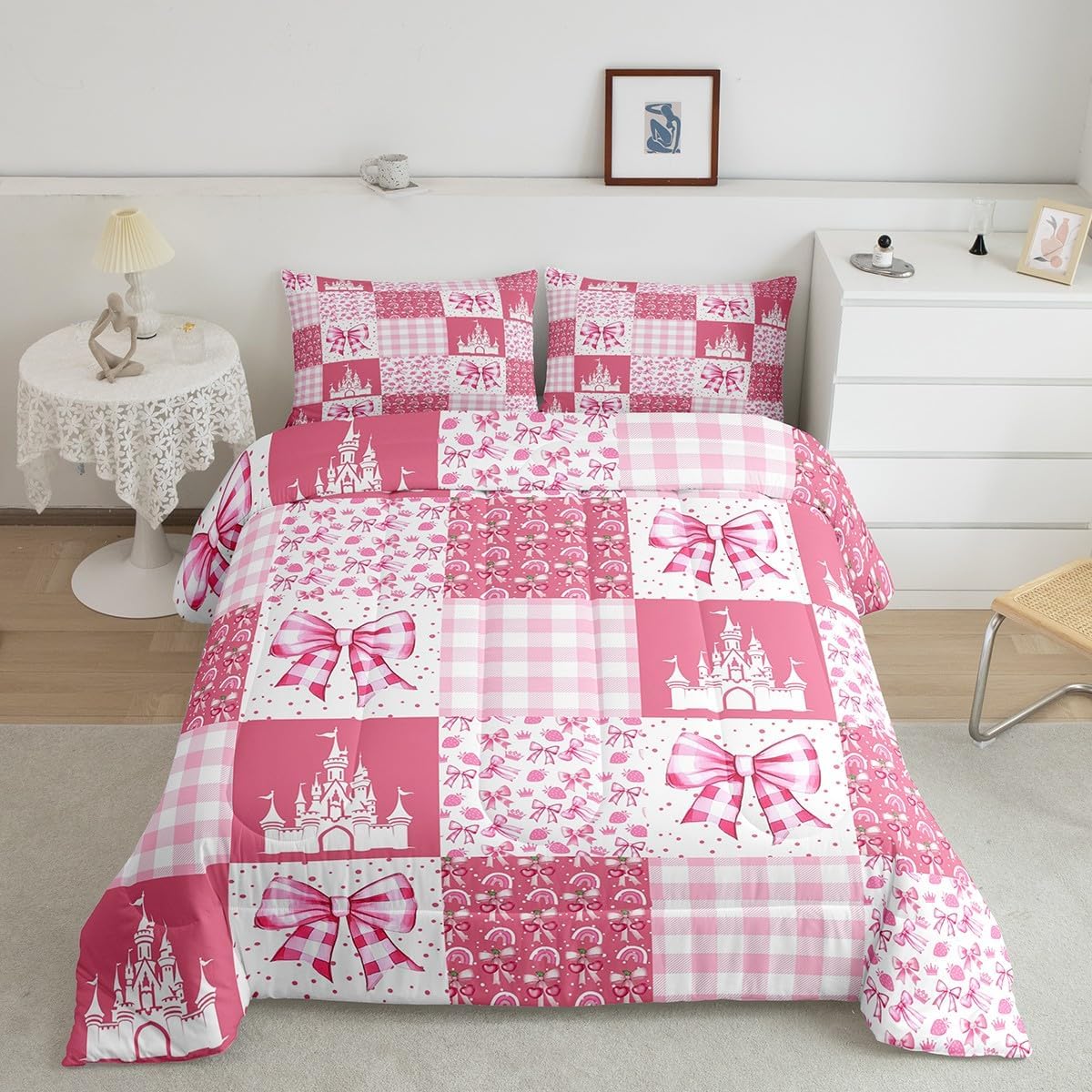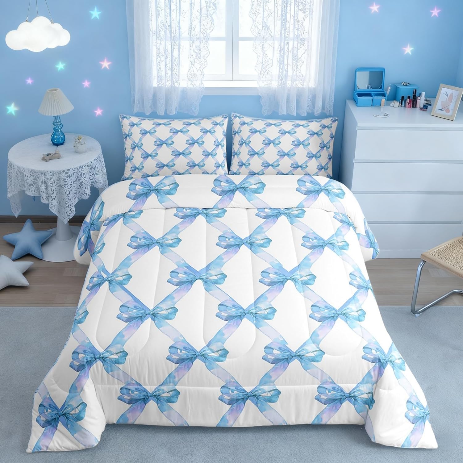 Package Include: Comforter and Pillowcase. Makeover your bedrooms every season with our Comforter sets. Perfect item for your room, girls boys youth room, master bedroom. Size Information: Twin size down comforter 68"W x 90"L and 1 pillow case 30"W x 20"L. 2pcs with 1 Bed Comforter and 1 Pillowcases in A Bag Full size down comforter 79"W x 90"L and 2 pillow cases 30"W x 20"L. 3pcs with 1 Bed Comforter and 2 Pillowcases in A Bag Queen size down comforter 90"W x 90"L and 2 pillow cases 30"W x 20"L. 3pcs with 1 Bed Comforter and 2 Pillowcases in A Bag King size down comforter 104"W x 90"L and 2 pillow cases 36"W x 20"L. 3pcs with 1 Bed Comforter and 2 Pillowcases in A Bag Useful and practical A luxurious product for homes, dorm rooms, hotels, guest rooms. Practical to use for being polyester, feels like cotton which is Super Soft and Breathable. No chemicals used, No dye substance harming the health of you or your family. Unique design: Vivid Colors won't fade thanks to new 3D digital printing methods. These unique designs match well with various color palettes of your rugs, curtains, headboard, furniture, and all other decor accessories. Personalized: As manufacturers of digital printed home textiles, we follow current trends and bring you the latest home fashion. More Decor: Search our store to get more christmas theme, new year theme, autumn fall theme, any holiday theme, modern abstract, farmhouse rustic theme, simple pattern, garden flowers etc. home decoration. Warm Tips: 1. Please allow 1-3cm error due to manual measurement. 2. Actual color may vary from the color on your screen due to monitor color restrictions.