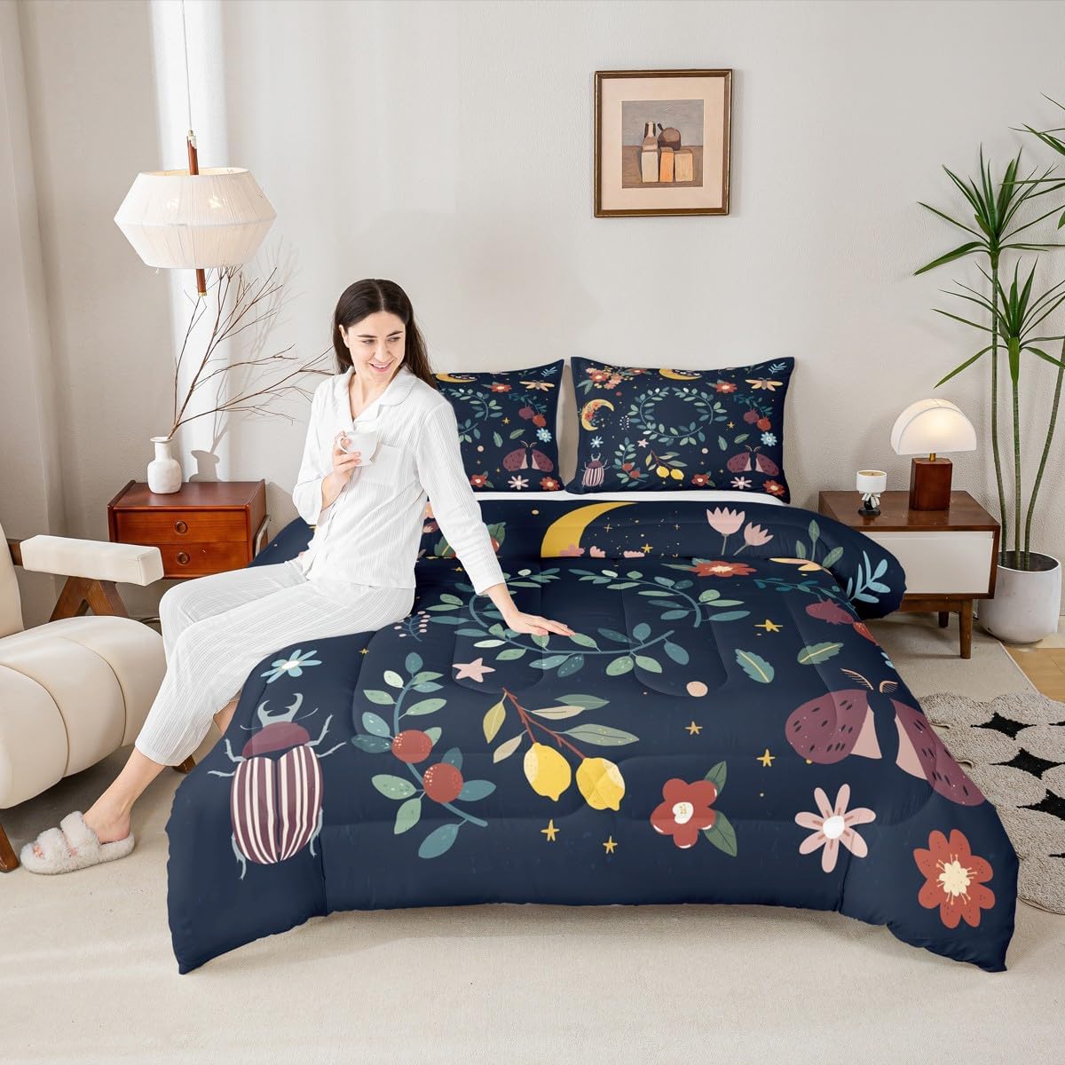 Package Include: Comforter and Pillowcase. Makeover your bedrooms every season with our Comforter sets. Perfect item for your room, girls boys youth room, master bedroom. Size Information: Twin size down comforter 68"W x 90"L and 1 pillow case 30"W x 20"L. 2pcs with 1 Bed Comforter and 1 Pillowcases in A Bag Full size down comforter 79"W x 90"L and 2 pillow cases 30"W x 20"L. 3pcs with 1 Bed Comforter and 2 Pillowcases in A Bag Queen size down comforter 90"W x 90"L and 2 pillow cases 30"W x 20"L. 3pcs with 1 Bed Comforter and 2 Pillowcases in A Bag King size down comforter 104"W x 90"L and 2 pillow cases 36"W x 20"L. 3pcs with 1 Bed Comforter and 2 Pillowcases in A Bag Useful and practical A luxurious product for homes, dorm rooms, hotels, guest rooms. Practical to use for being polyester, feels like cotton which is Super Soft and Breathable. No chemicals used, No dye substance harming the health of you or your family. Unique design: Vivid Colors won't fade thanks to new 3D digital printing methods. These unique designs match well with various color palettes of your rugs, curtains, headboard, furniture, and all other decor accessories. Personalized: As manufacturers of digital printed home textiles, we follow current trends and bring you the latest home fashion. More Decor: Search our store to get more christmas theme, new year theme, autumn fall theme, any holiday theme, modern abstract, farmhouse rustic theme, simple pattern, garden flowers etc. home decoration. Warm Tips: 1. Please allow 1-3cm error due to manual measurement. 2. Actual color may vary from the color on your screen due to monitor color restrictions.