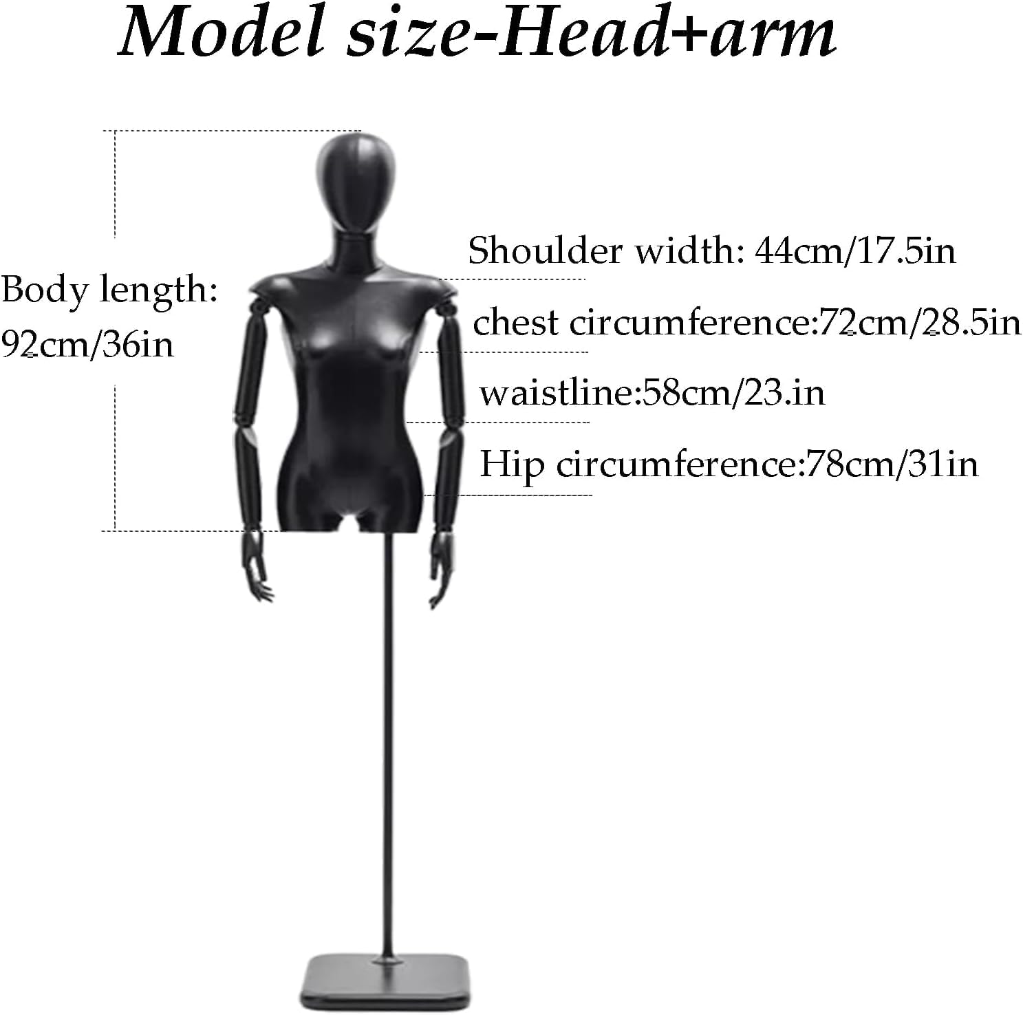 Product Name: Mannequin/Mannequin Body/Mannequin Model/Half-Body Female Model Product Name: Flat female model Product body material: solid foam Product body external material: cloth Product color: black Product style: no head+no arm (A), no head+arm (B), head+arm (C) Product bracket/base color: black Product bracket/base style: Square plate,Circular plate,Triangle Product body length: 72cm/28.5in (no head), 92cm/36in (with head) The overall adjustable range is about: 145-180cm/57-71in Product packaging size (LxWxH): 120x43x31cm/47x17x12in (with head), 112x43x29cm/44x17x11.5in (no head) Product weight is about: 8kg/17.6lb (A), 8.5kg/18.7lb (B), 9kg/19.8lb (C) Features: Multi-Purpose Use: Our display mannequin with stand is suitable for sewing, photographing or displaying clothes in shop window, tailor shop, bridal store or online