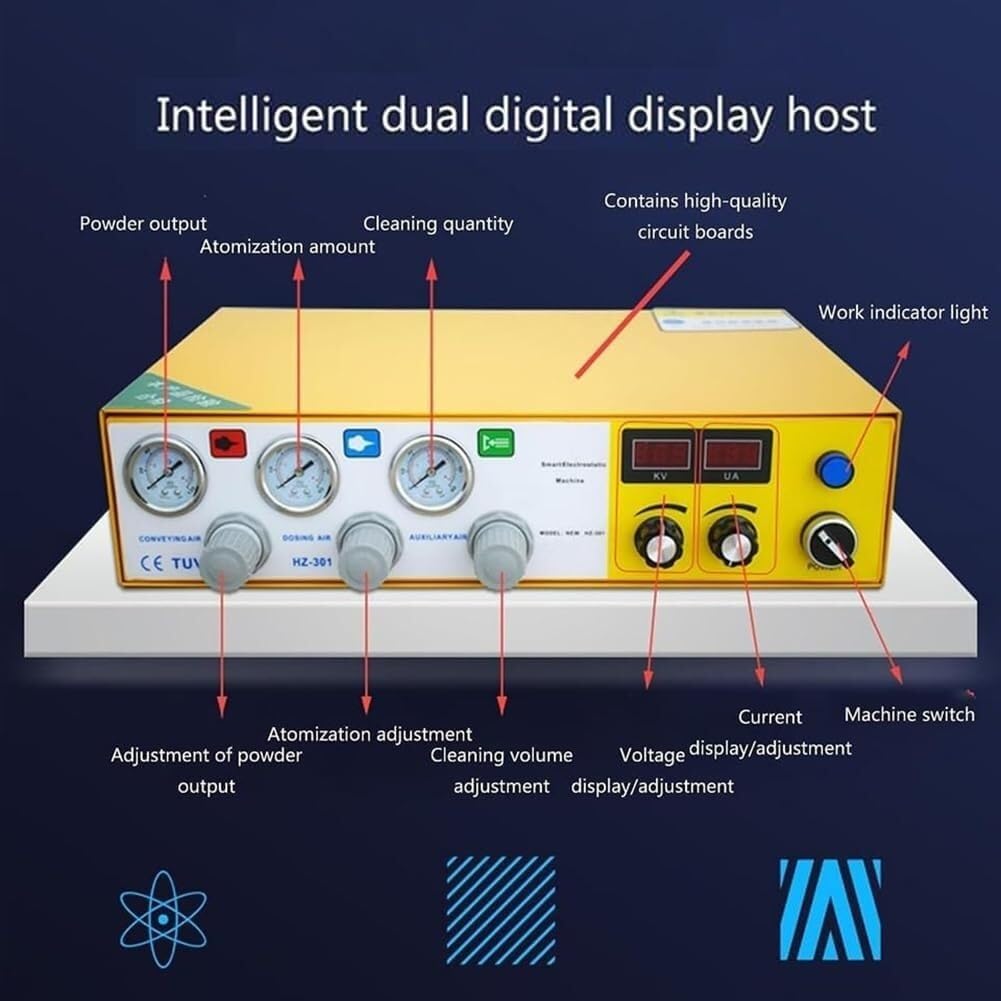 Product name: Electrostatic sprayerInput voltage: 220VInput air pressure: 0-0.8MPaOutput high voltage: 100kVOutput air pressure: 0-0.7MPaRated frequency: 50HzMaximum air consumption: 13.2 cubic meters/hour (0.4MPa)Rated power: 35W