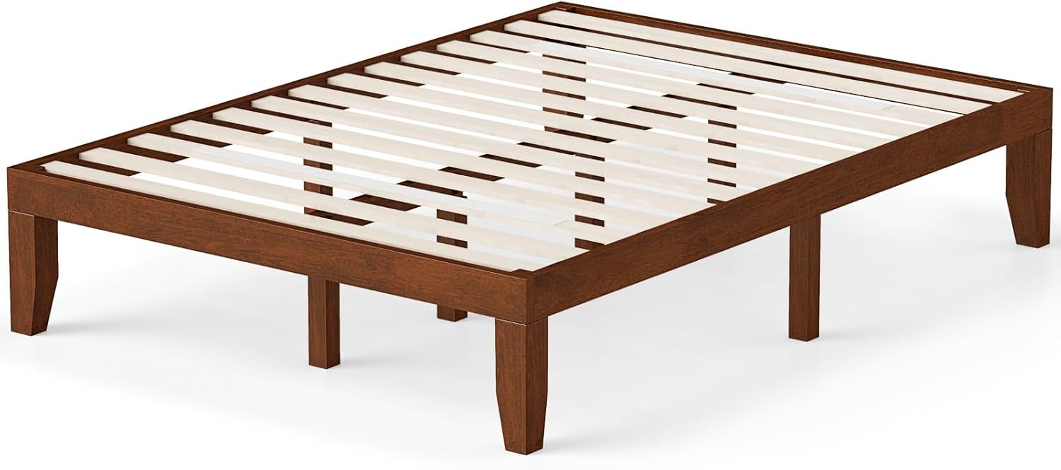 Description:This wooden bed frame ensures a comfortable night's sleep while adding a touch of elegant livability to your bedroom! The platform bed combines a solid rubber wood frame with heavy-duty wooden slats for robustness and firmness. Constructed from natural wood, it offers excellent durability and stability, supported further by wooden legs. The valuable under-bed space not only meets your daily storage needs but also makes room cleaning more convenient. Overall, this mid-century bed frame effortlessly complements any room decor, making it a versatile choice for any home.Features:14 wooden slats support for reliable structureSolid rubber wood frame for long-lasting useComes with 6 support legs for added stabilityMute bar pressed on the beam prevents noise caused by frictionIdeal for twin size mattress, no box spring needed10.5" under-bed space manages your idle thingsMid century style makes the bed frame more attractiveSuitable for bedroom, guest room, dorm, or apartment, etcConsiderate stickers to retain mattressHook and loop fastener for easy assemblySpecifications:Material: Plywood, Rubber WoodOverall Dimension: 74.5" x 38" x 14"(L x W x H)Weight Capacity: 250 lbsNet Weight: 43 lbsPackage includes:1 x Wood Platform Bed 1 x User Guide