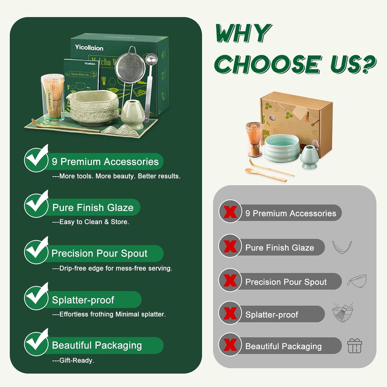 | Included Components | Matcha Bowl, Bamboo Scoop, Scoop Holder, Measuring Spoon, Tea Mat, Tea Sifter, Whisk Holder, Bamboo Whisk, Handbook |