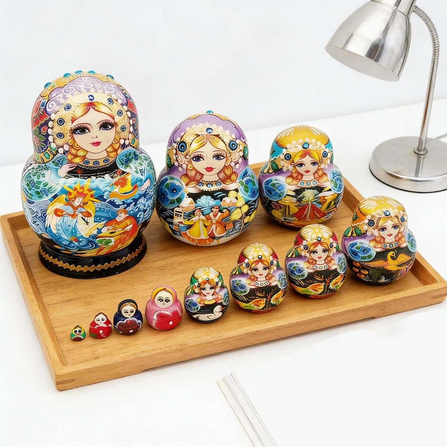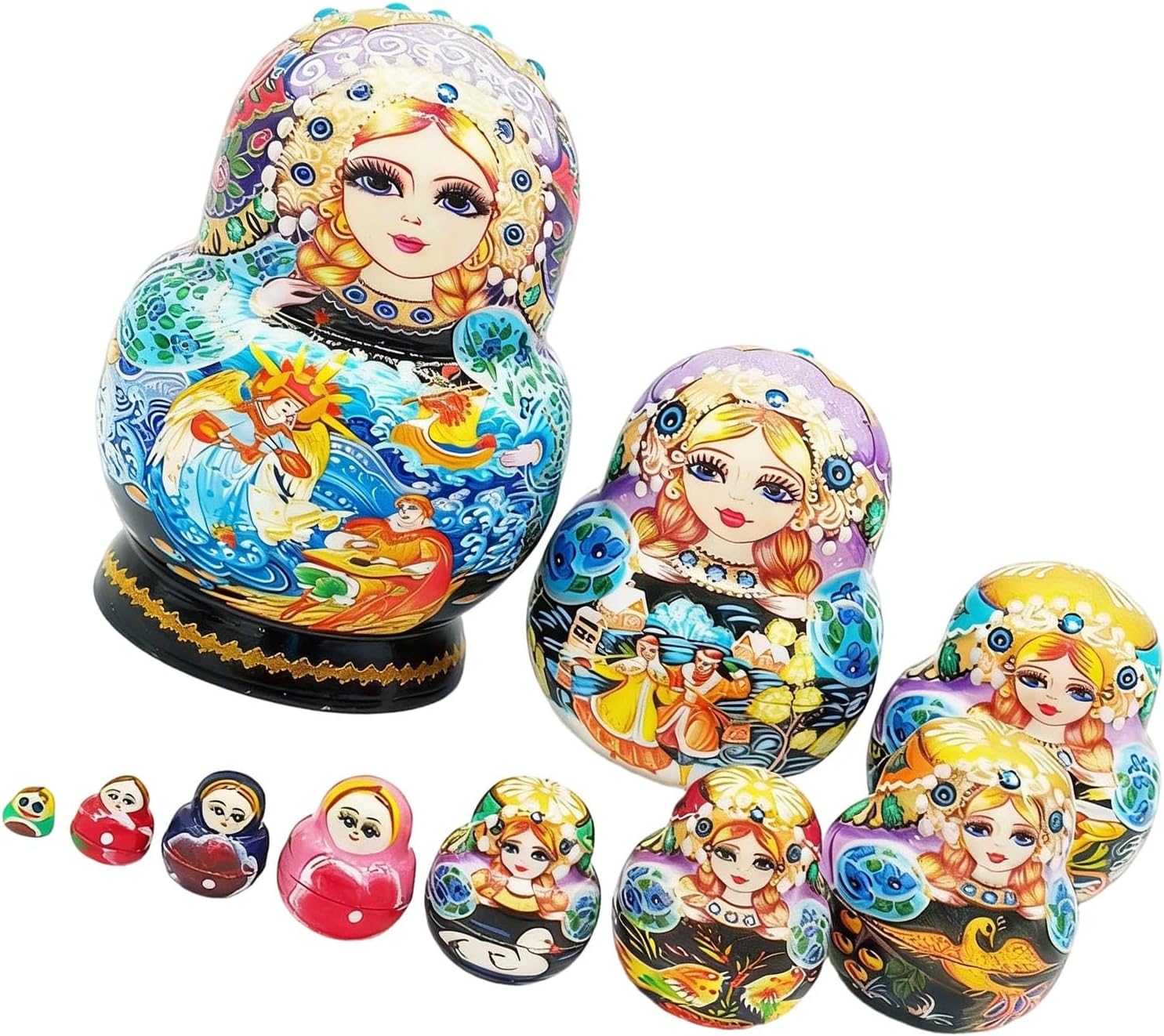 Matryoshka Russian Nesting Doll Traditional Art Russian Nesting Dolls Set of 10 Layers Wooden Matryoshka for Features the charm of authentic Russian nesting dolls with ten layers, featuring exquisite hand painted designs that blend cultural art with educational play for solving the lack of cultural depth in ordinary toy.Crafted from wood, these nesting dolls a ten layer nesting design that allows easy stacking and disassembly, promoting creativity and saving space efficiently in any home.Ideal for preschoolers, families, and collectors, this toy supports early cognitive development and family bonding, making it a perfect toy for parents seeking engaging educational toy.Perfect for enhancing home decor, facilitating parent interactive, or organizing toy neatly in compact living spaces like small apartments.Each layer showcases intricate hand painted detail, encouraging logical thinking and imagination through stacking and nesting play, ensuring fun and developmental growth.Specifications:Componnet: WoodSize: Approx.11x14.5cm/4.33x5.71inchQuantity: 1 SetPackage Includes:1 Set Ten-Layered Russian Matryoshka Doll for GirlsNote:1.Please allow 1-2cm errors due to manual measurement, make sure that you donot mind before you order. 2.Due to the differences between different monitors, the picture may not reflect the actual color of the item.