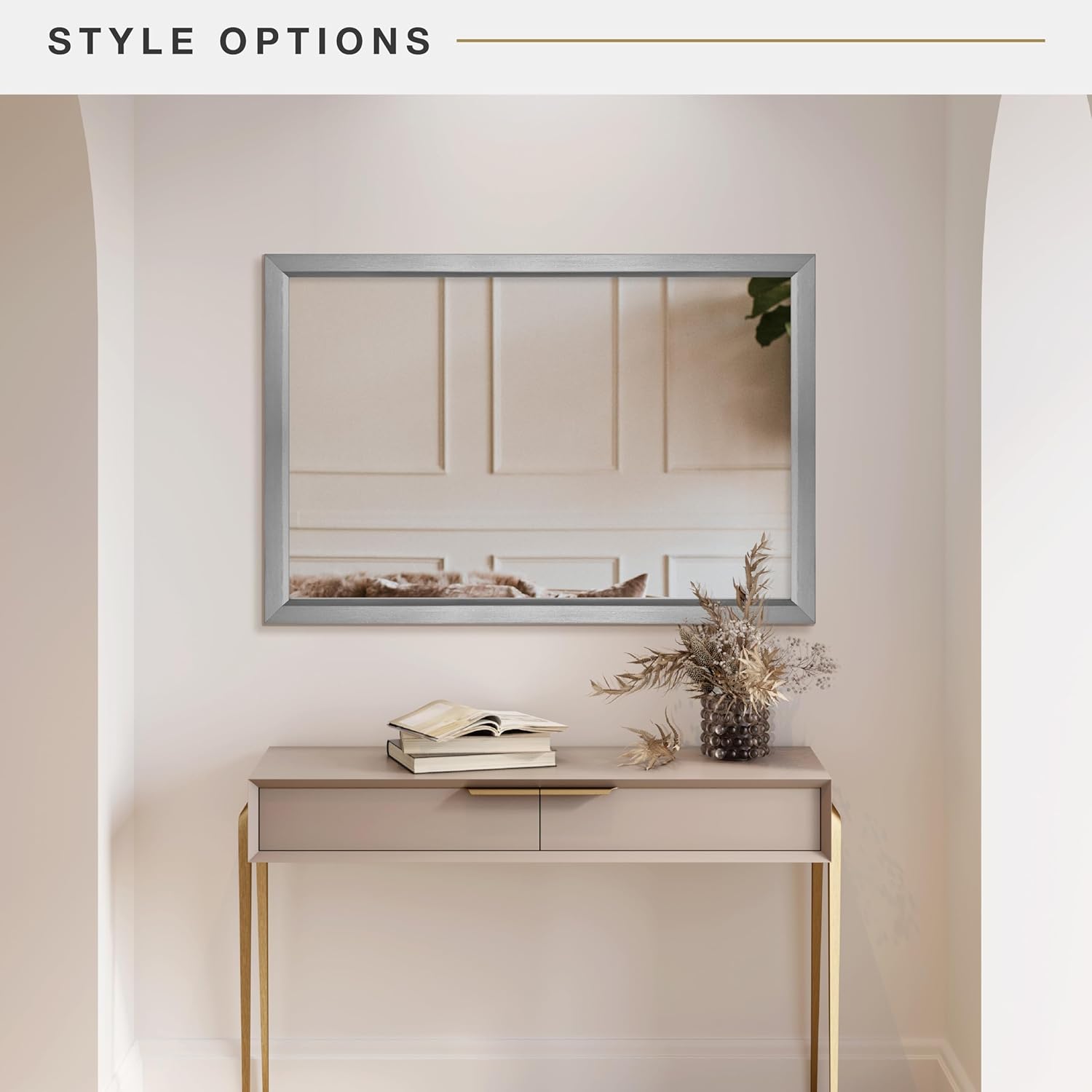 Transform your space with this classic beveled rectangle mirror, available in finishes like black, gold, white, pewter, and black woodgrain with gold accents, perfect for adding a refined, contemporary touch to entryways, bedrooms, and bathrooms. Sized at 23 x 34.25 inches and 1.5 inches deep, with options up to 66 inches in length, it fits beautifully in any room. Designed in the USA, the mirror features a crisp, premium 4mm shatter-resistant glass surface for lasting quality and style. SKOOCH hanging technology allows for easy vertical or horizontal display with cleat or fixed corner mounting, and all hardware is included. Crafted by MCS with a dedication to design and functionality, this mirror makes a timeless statement, creating an elegant focal point in any home.