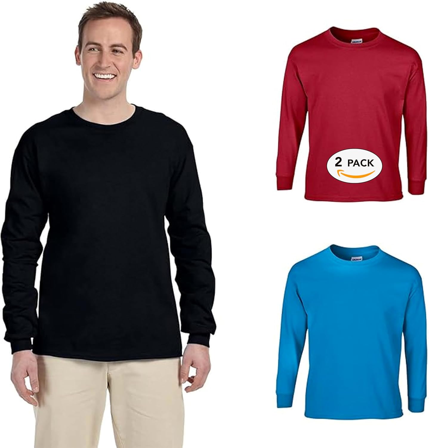 Introducing the Gildan Men's Heavy Cotton Long Sleeve T-Shirt Multipack - the perfect blend of style, comfort, and versatility. Made with 100% cotton, these long sleeve tees offer a comfortable and breathable fit that is ideal for everyday wear and casual outings. With our unique "Create Your Own Color Set" option, you have the freedom to choose your favorite colors and create a personalized set that perfectly matches your individual style. Available in 28 solid colors, these tees are a must-have for any wardrobe. Crafted with care, these long sleeve t-shirts feature rib cuffs and a pull-on closure for a secure fit. The crew neck design ensures a nonrestrictive feel, while the tear-away label adds an extra touch of comfort. Whether you're running errands or enjoying outdoor activities, these tees provide a comfortable and unrestricted experience. Made from high-quality cotton, these long sleeve t-shirts are not only soft to the touch but also durable, ensuring they withstand the test of time. The mid-weight material strikes the perfect balance between warmth and breathability, making it suitable for year-round wear. Elevate your everyday look with the Gildan Men's Heavy Cotton Long Sleeve T-Shirt Multipack. Customize your own set with a range of colors to make a fashion statement that reflects your unique personality. Experience the perfect blend of style, comfort, and individuality with Gildan.