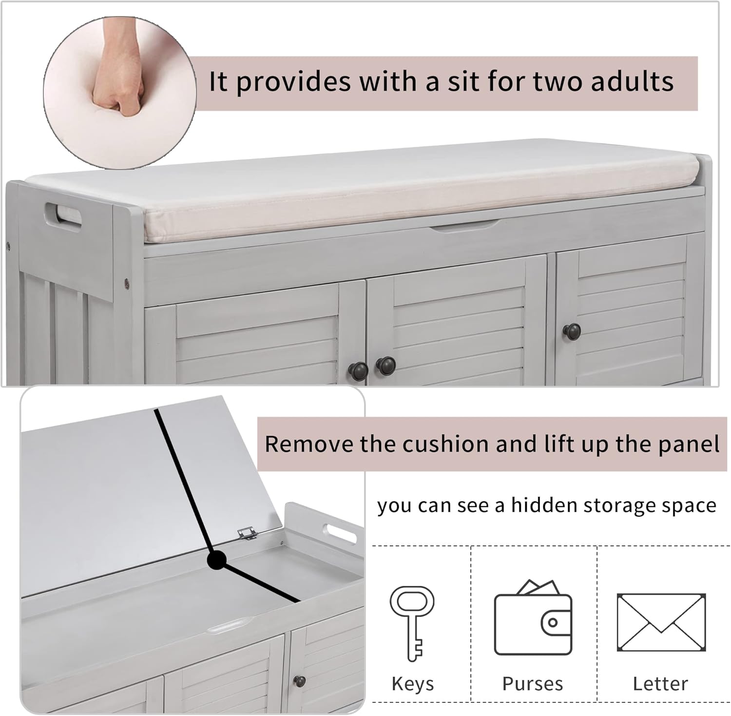 Dimensions & WeightProduct Dimensions & Weight43.5“L x 16”W x 18”H, 52.2 LBSPackage Dimensions & Weight48“L x 20”W x 10”H, 57.76 LBSHidden Storage Space Dimensions: 40.6”Lx14.4”Wx1.5”HWeight CapacitySeat: 155 LBSDrawer: 55 LBS