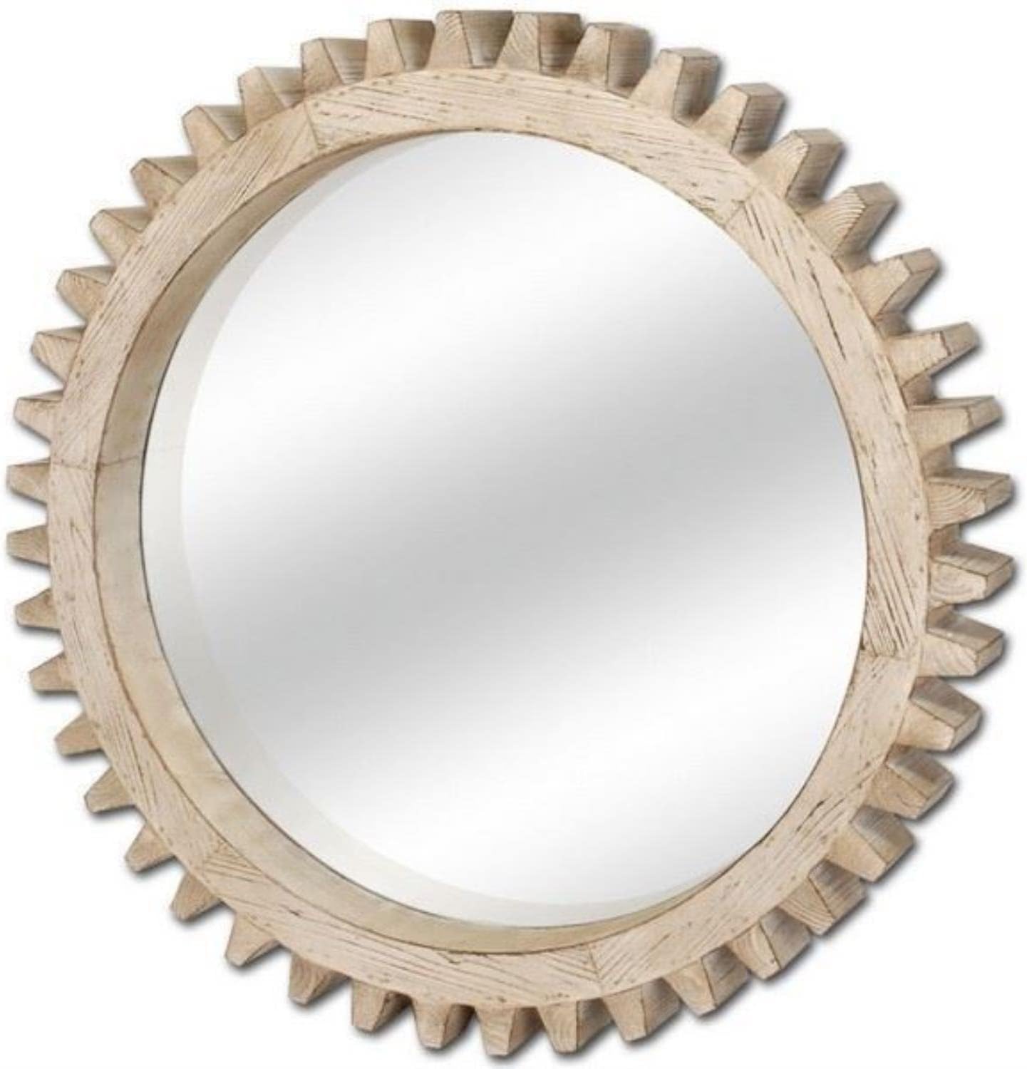 Rustic finish, natural wood cog mirror designed to interlock when hung. Comes in three finishes of varying size.