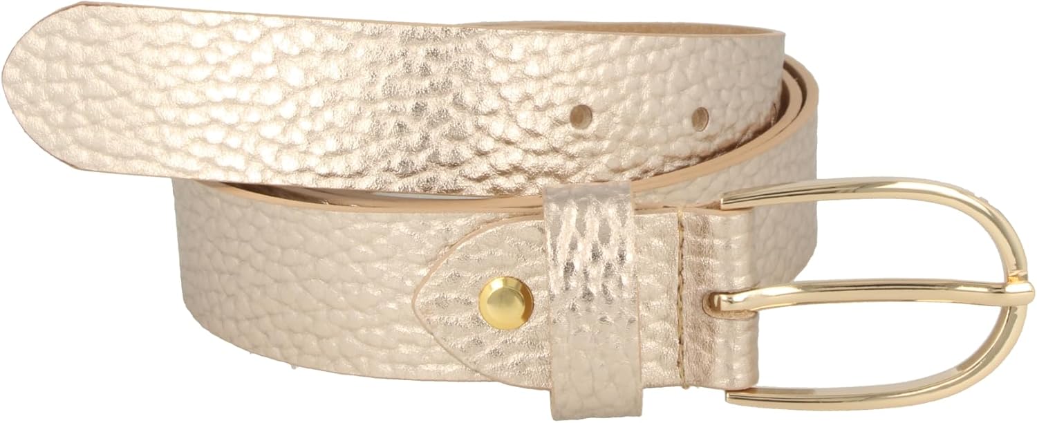 This beautiful belt impresses with its metallic leather. The simple, nickel-free buckle rounds off the belt perfectly. The basic width 3 cm is suitable for trousers and of course also perfect for dresses and skirts and jumpsuits. All belts are equipped with screw system and therefore too long belts can be easily adjusted.