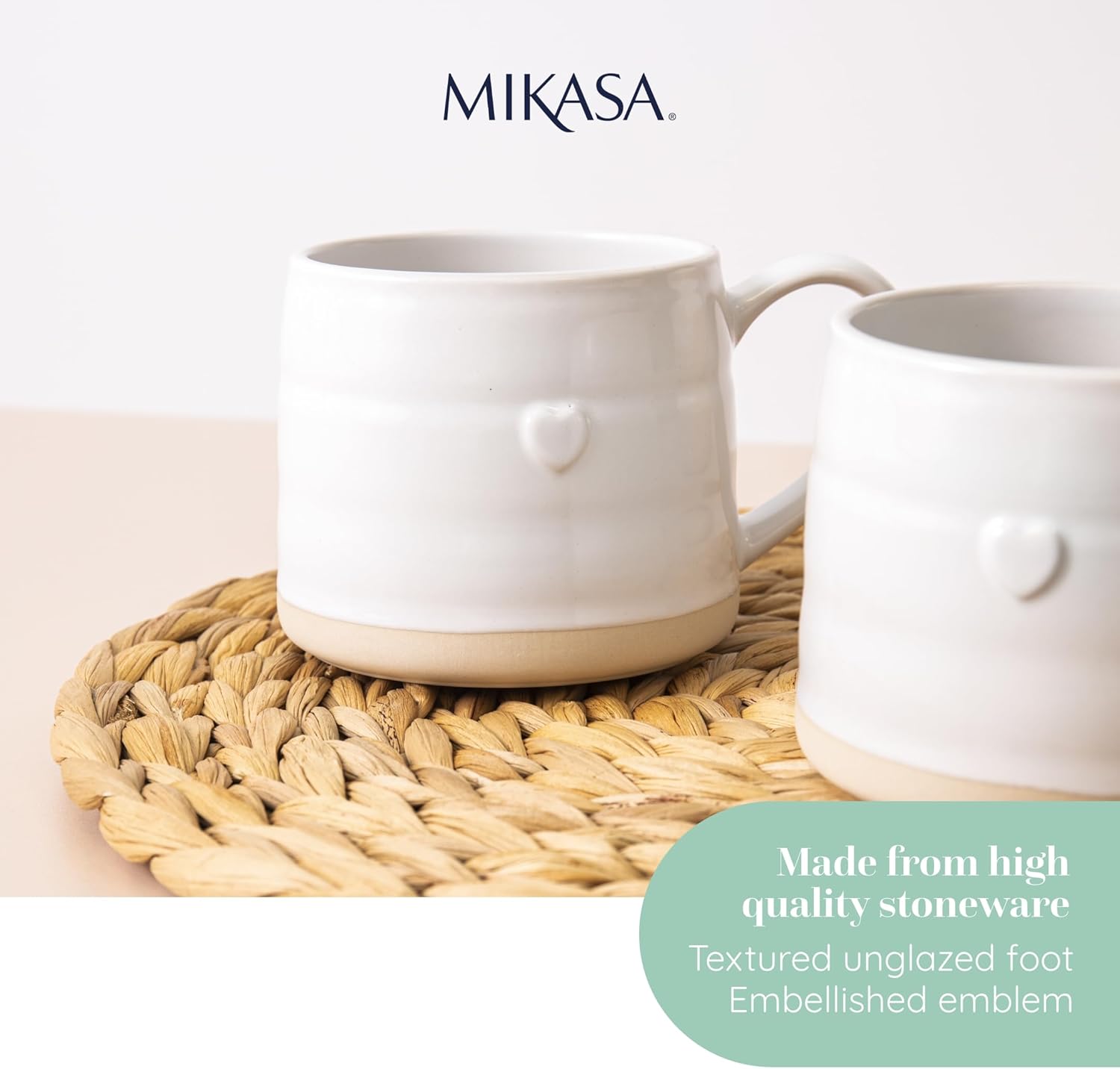 | Item Type Name | Mikasa Farmhouse Heart Stoneware Mugs, Set of 2, 380ml, White |