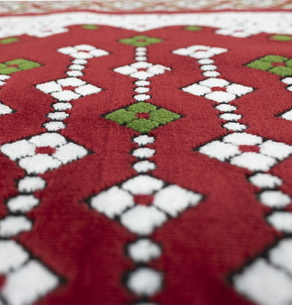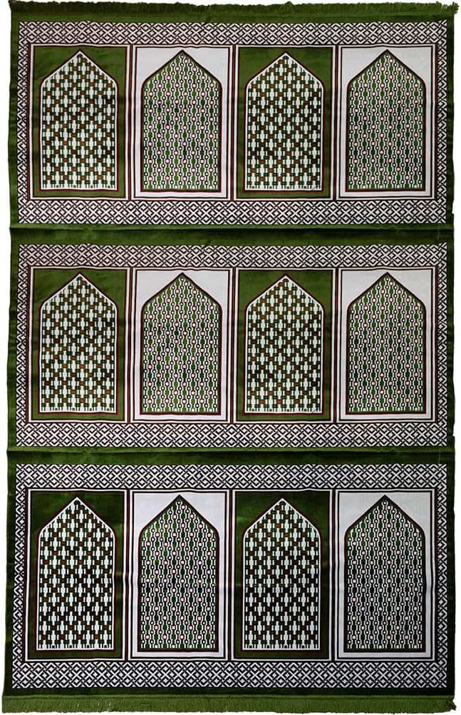 Modefa Muslim Praying Mat ---> Looking for a sajjadah perfect for large gatherings? You've found it! Our multi person Muslims prayer rug are great for families or groups! Made out of plush velvet and available in a wide variety of designs! Amazing plush praying rug that makes for a good Muslim gifts for men for any special occasion! Also great Islamic gifts for women! Why We Love It ---> What an incredible, large mat for prayer! Available in several color combinations and intricate geometric patterns! Combine that with its wide multi person design and you've got a janamaz that is sure to wow. Wide namaz mat can be comfortably used by 12 people! Perfect Islamic gift or Eid gift or Ramadan gifts! Great Muslim gifts for women! Thickness Scale ---> 6/10: Our Modefa Thickness Rating on this Turkish prayer carpet is a 6 out of 10. This means it is a standard thickness velvet prayer rug. Great Muslim prayer rug and pray carpet for daily salah prayers for Muslims. Every Muslim needs a good quality janamaz prayer rug to perform the prayers as prescribed in Islam. Turkish prayer rug make for great Ramadan gifts for women and men! Quality You Can Feel ---> Our Muslim prayer mat are made in Turkey, so you know it is quality you can trust! For centuries, Turkey has been a renowned producer of Islamic prayer rugs. You can rest easy knowing you pray namaz on a salah mat that has been ethically produced in Turkish factories -- by Muslims, for Muslims. Specifications ---> Size: 6.5ft x 10.8ft (200cm x 330cm) | Material: Velvet | Care: Hand wash, line dry for best results. May be washed on gentle cycle, cold, in a washing machine, but be aware that the tassels may come loose. We do not recommend regular washing. | Weight: 12lbs