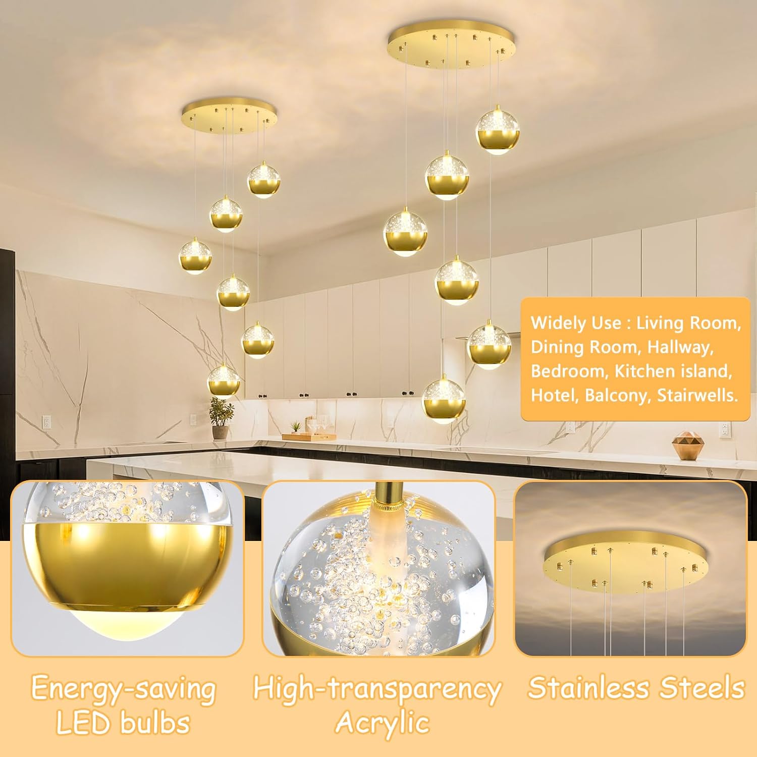 Modern Crystal Chandelier Cluster Pendant Light Dimmable LED Chandeliers 6 Light Globe Lighting Fixture for Dining Room Kitchen Island Gold