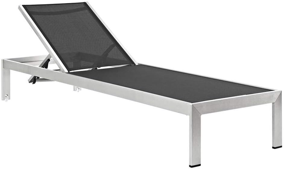 Maintain clean lines with the Shore Outdoor Patio Chaise Lounge Set in Mesh. Strong and durable, relax as you choose from four available recline positions or sunbathe while lying flush on Shore’s breathable Textilene mesh. Made with an anodized brushed aluminum frame, Shore Patio Chaise Lounge Chair is a breeze to assemble, comes with clear wheels for easy mobility on the top end, and non-marking black plastic foot caps under the bottom two support legs. Chic and minimalist, the Shore Outdoor Sun Lounger in Mesh is a piece built to last with the comfort and versatility you’ve been looking for in an outdoor lounger.