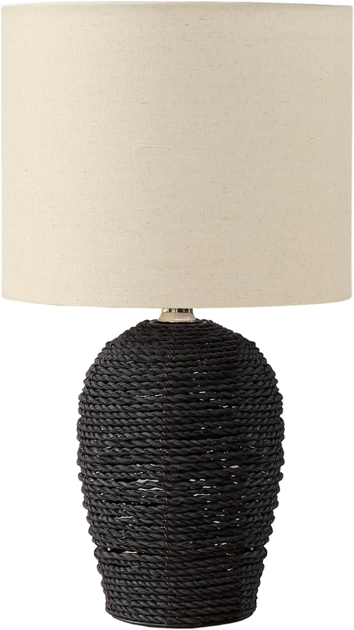 Transform your living space with Monarch Specialties' sophisticated 17-inch table lamp, where modern charm meets transitional elegance. The natural rattan base showcases exquisite craftsmanship with its textured, woven rope design, creating a striking visual statement. Topped with a refined beige fabric shade in a classic drum style, this lamp diffuses light beautifully to create the perfect ambiance in any room. Whether placed on your nightstand, console, or end table, it provides ideal illumination for reading or creating a cozy atmosphere. The lamp features a convenient rotary on/off switch and accommodates a standard 60W bulb (not included). Its versatile design complements various decor styles, from contemporary to traditional, making it an excellent choice for living rooms, bedrooms, or home offices. Standing at 16.5 inches tall with a 9.5-inch shade diameter, this lamp offers both style and functionality while maintaining a modest footprint.