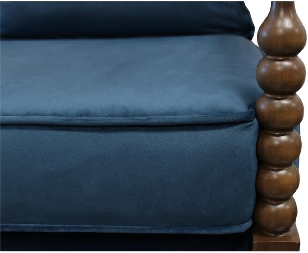 | Additional Features | Comfortable, foam filled back and seat cushions, Hand-carved solid rubberwood spindle frame, Royal Blue velvet fabric upholstered cushions |