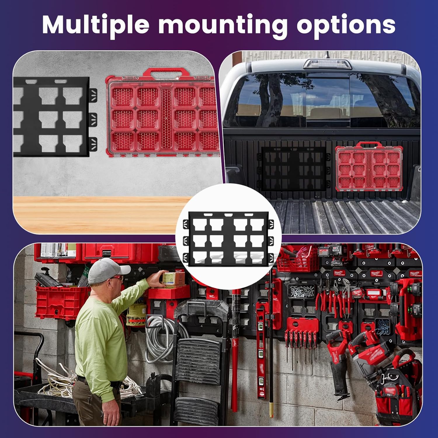 • Function: As a dedicated packout mounting plate for the entire Milwaukee toolbox series, it is designed to build a professional tool storage and organization system. By fixing mounting plate to your vehicle or workplace, you can effectively organize your tools and keep everything in order. It is easy to carry, protects your tools, and saves space