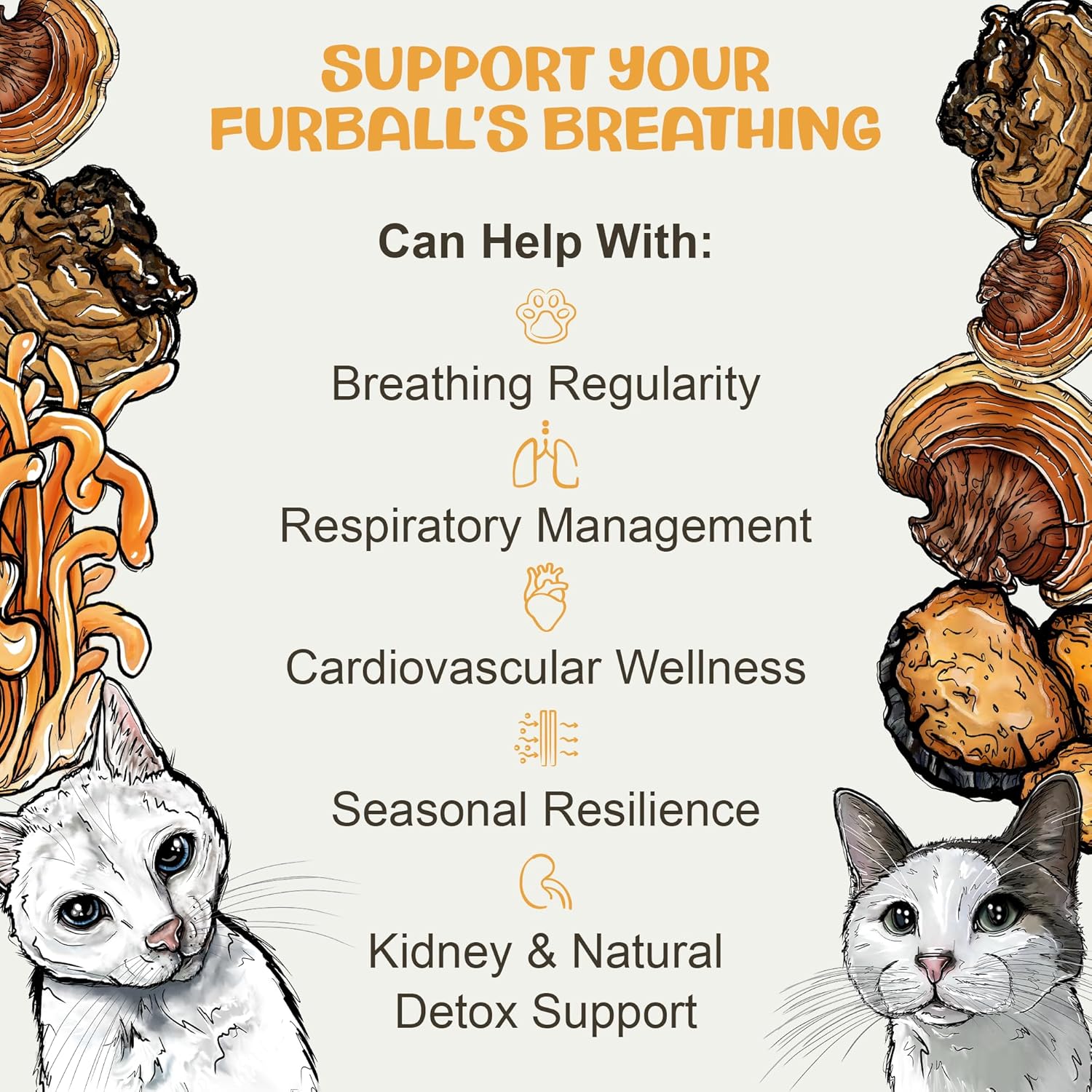 MycoCat BREATHE - Cat Respiratory Support Supplement - Breathing Comfort & Airway Health - For Felines of Every Age & Breed - Natural Mushroom and Ashwagandha Drops - 2 oz