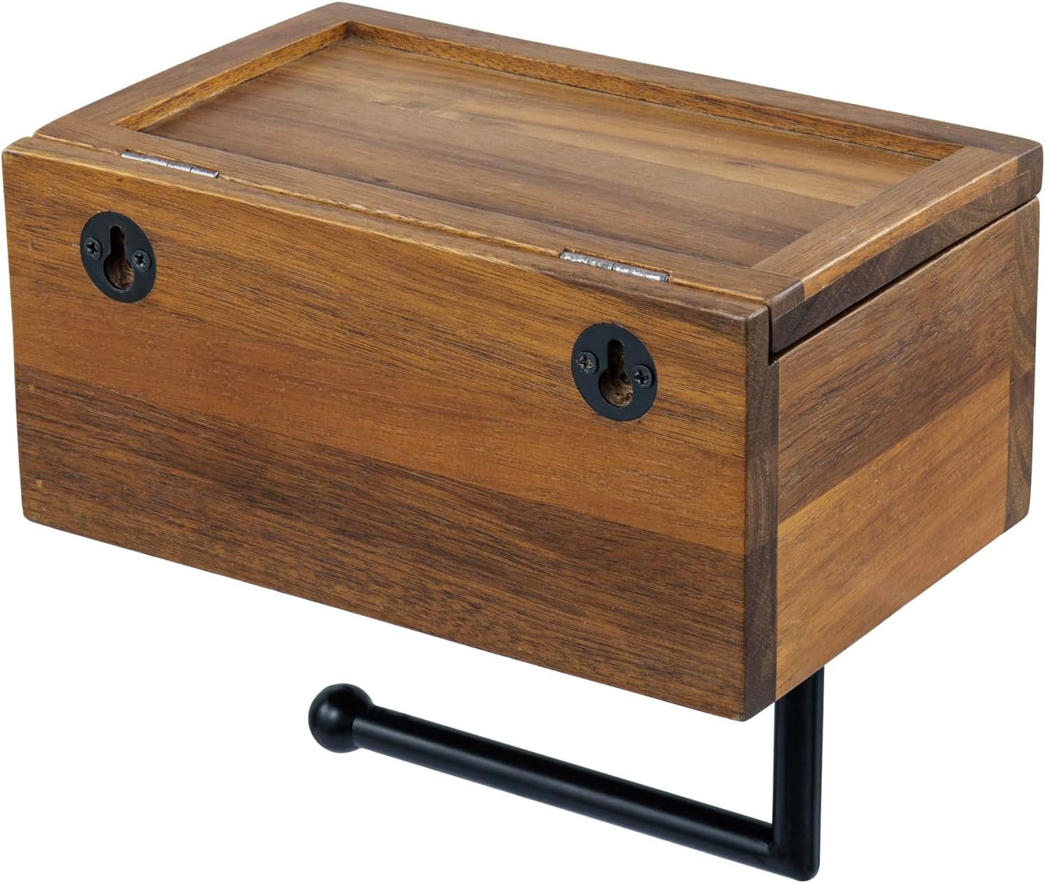 Elevate your bathroom organization with the sleek functionality of this Mid-Century Style Wall Mounted Toilet Paper Holder with Flushable Wipes Dispenser and Storage Shelf. Expertly crafted from premium solid acacia wood, this multifunctional bathroom accessory blends natural beauty with everyday practicality. The warm, rich wood tones and minimalist mid-century design make it a stylish accent that complements both modern and rustic interiors. Unlike ordinary toilet paper holders, this innovative design includes a built-in compartment for flushable wet wipes, keeping them discreetly stored yet easily accessible whenever needed. The wipes holder is thoughtfully concealed to maintain a clean, clutter-free aesthetic while offering added convenience for guests and family members alike. The top storage shelf tray provides additional space for bathroom essentials or decorative items. Use it to hold air fresheners, candles, small potted plants, or even your phone for an extra touch of practicality. Its sturdy acacia wood construction ensures durability and long-lasting performance, while the wall-mounted design saves valuable floor space, making it ideal for bathrooms of all sizes. Perfect for those who value both form and function, this versatile toilet paper holder with wipes dispenser and shelf tray brings a polished, hotel-inspired look to your bathroom while keeping necessities neatly organized and within reach.