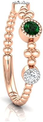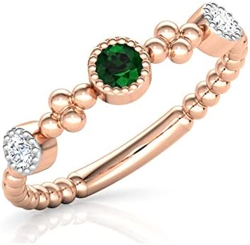 This elegant ring showcases a natural emerald centerpiece flanked by sparkling diamonds, set in luxurious 18K rose gold with a unique beaded band design. Perfect for expressing enduring love to your spouse, it combines timeless sophistication with everyday wearability.