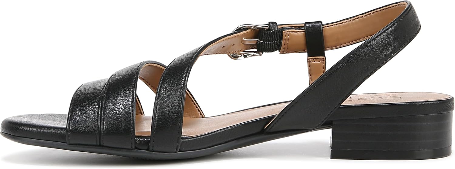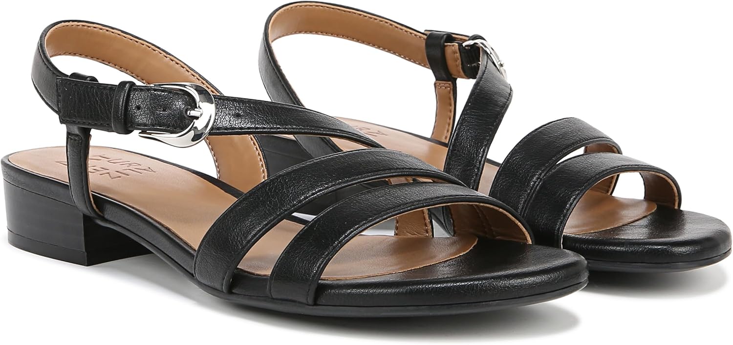 Strappy sandals: your go-to for endless spring and summer events. A low block heel takes you from day to night. Chic + comfortable sandals with slingback strap. Synthetic or metallic synthetic upper with 35% bio-based lining and an open almond toe. Adjustable buckle closure. Contour+ Comfort technology for a premium fit and all-day comfort experience. 1 inch heel. Consciously packaged: 100% of our shoe boxes are made of 80% recycled paper + soy-based ink. Designed using some environmentally preferred materials. WHY YOU’LL LOVE IT: Forever elegant silhouettes with all day wearability, available in an inclusive range of sizes and widths. Designed to the contours of a woman’s foot. The Beautiful Fit. Since 1927.