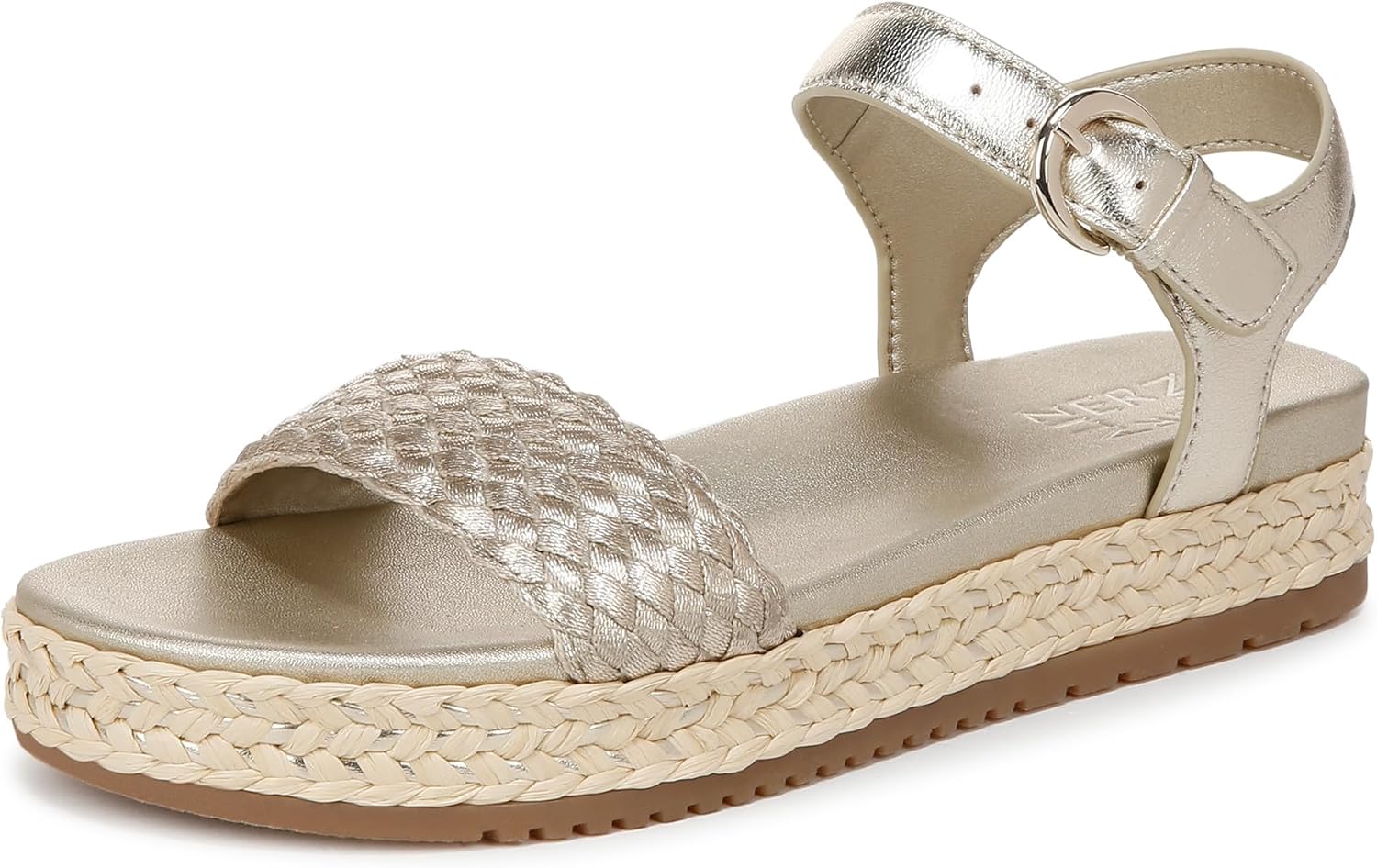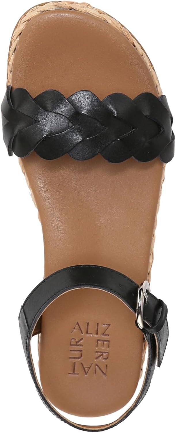 Made with braided details for an artisanal feel, these will easily become your new favorite womens sandals. With Naturalizer, you have options; shop both medium and wide width sandals for women. Comfortable + casual espadrille sandals with raffia bottom. Leather or suede upper with an open toe. Adjustable buckle closure. Contour+ Comfort technology for a premium fit and all-day comfort experience. EVA footbed. Non-slip outsole. 1 inch platform, 1 1/4 inch heel. Consciously packaged: 100% of our shoe boxes are made of 80% recycled paper + soy-based ink. Designed using sustainable materials. WHY YOU'LL LOVE IT: Designed to the contours of a woman's foot. Available in an inclusive range of sizes and widths for a custom-designed fit and all-day wear, with a promise of both elegance and utility. The Beautiful Fit. Since 1927.
