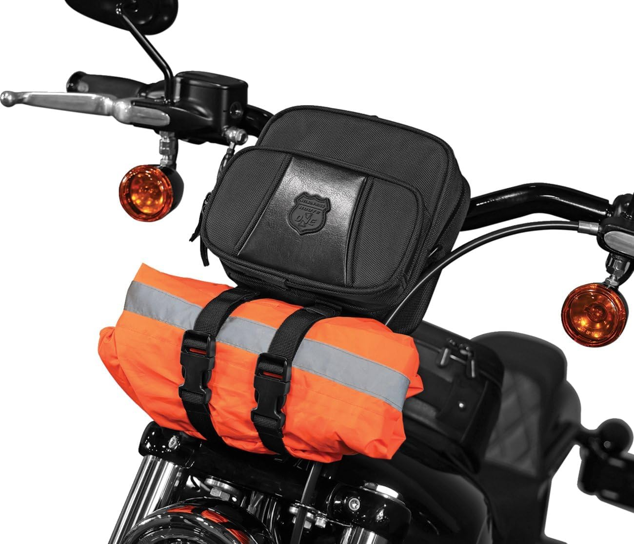 Made from our proprietary and industry-leading UltraMax® fabric, this handlebar bag features maximum UV protection and is backed by a lifetime warranty, ensuring it stands up to the toughest conditions. This versatile bag features a light-gray lined interior, making it easy to locate your gear, with multiple compartments, including a key fob clip, a large mesh pocket, and three smaller organizer pockets. A soft tricot-lined front pocket offers added protection for sensitive items like cell phones or sunglasses, while water-resistant zippers help keep contents clean and dry. Designed for universal fitment, the Highway Handlebar Bag securely attaches to most handlebars, T-bars, sissy bars, racks and more, thanks to its innovative back panel with 11 web-loops for strap configurations. It comes with six 8” hook-and-loop straps for easy attachment and two 18” quick-release straps for securing additional gear underneath. Two charging cord slots ensure your electronics stay powered on the go, and a 48” adjustable shoulder strap adds portability. Compact yet spacious, this key luggage piece measures 8”L x 7.5”H x 5”W (3” wide at top) and holds approximately 7 liters of gear. For full weather protection, an optional waterproof rain cover is available. The Highway Handlebar Bag combines practical design with rugged dependability, making it the perfect companion for your next ride.