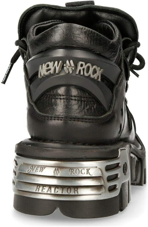 Introducing the Ankle Boot M.110-S1 New Rock collection. Crafted from high quality smooth leather material the tower boots boasts a classic Gothic style blended with new punk and rock design cues. This boot is a popular staple for the New rock brand that features iconic silve spikes across the front tongue, a lace up fastening and ankle boot finish For added style the boots includes tower heels to complete a heavy metal punk look, and the rubber soles also include Metal fittings, which is a staple for the New Rock Collection.