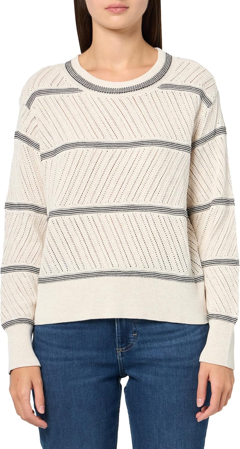 A modern take on a knit classic, blending feminine charm with timeless rugby stripes. Featuring a delicate diagonal pointelle design, it adds texture and a little extra sophistication, while thoughtfully placed collar stripe detail shows the care we put into construction. Perfectly balancing style and comfort, this versatile sweater works beautifully with denim for casual days or layered over a crisp shirt for a more polished look. Effortless yet chic, it’s a fresh update to a wardrobe staple.