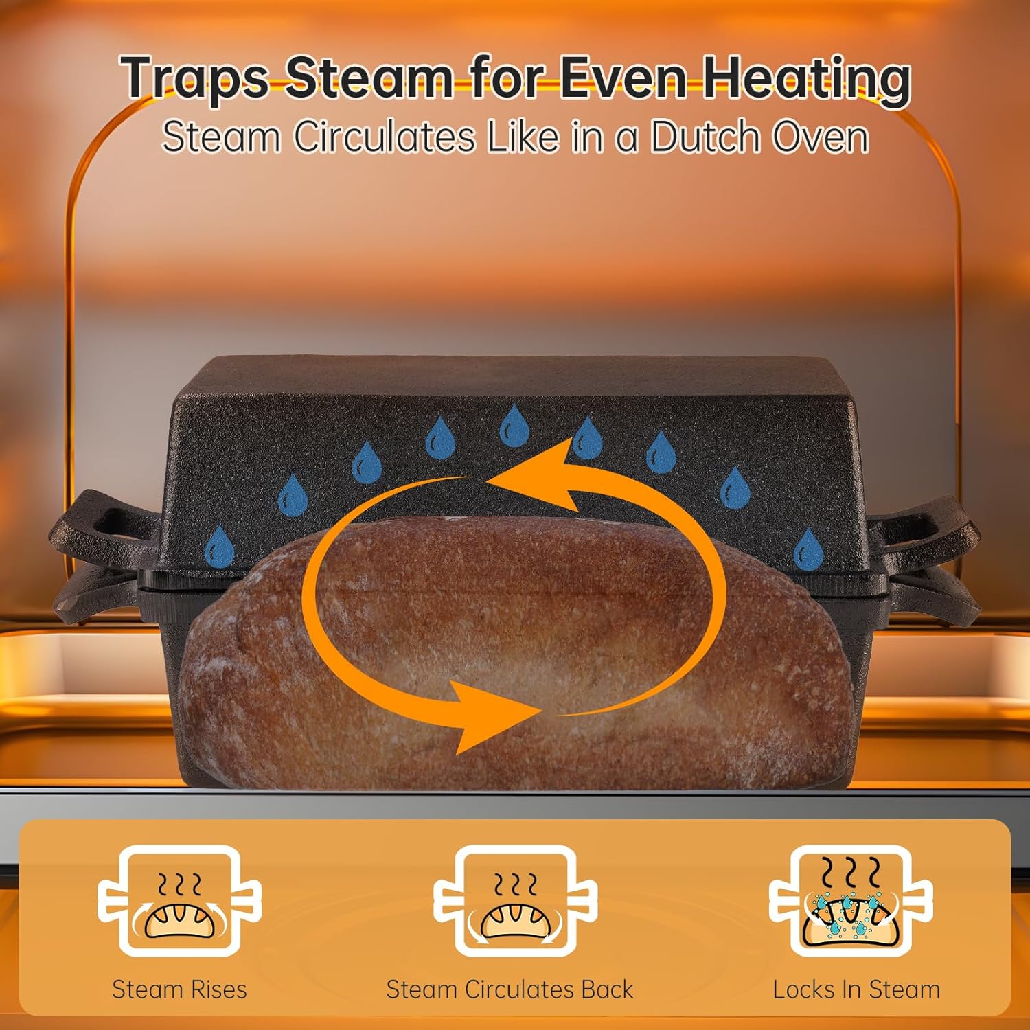 NiHome Cast Iron Bread Pan Set with Lid, 2 Loaf Pans + 2 Silicone Mats + Bread Lame, Heavy-Duty Cast Iron for Even Heat & Crisp Crust, Dual-Pan Design for Covered or Open Baking, Dishwasher-Safe Mats