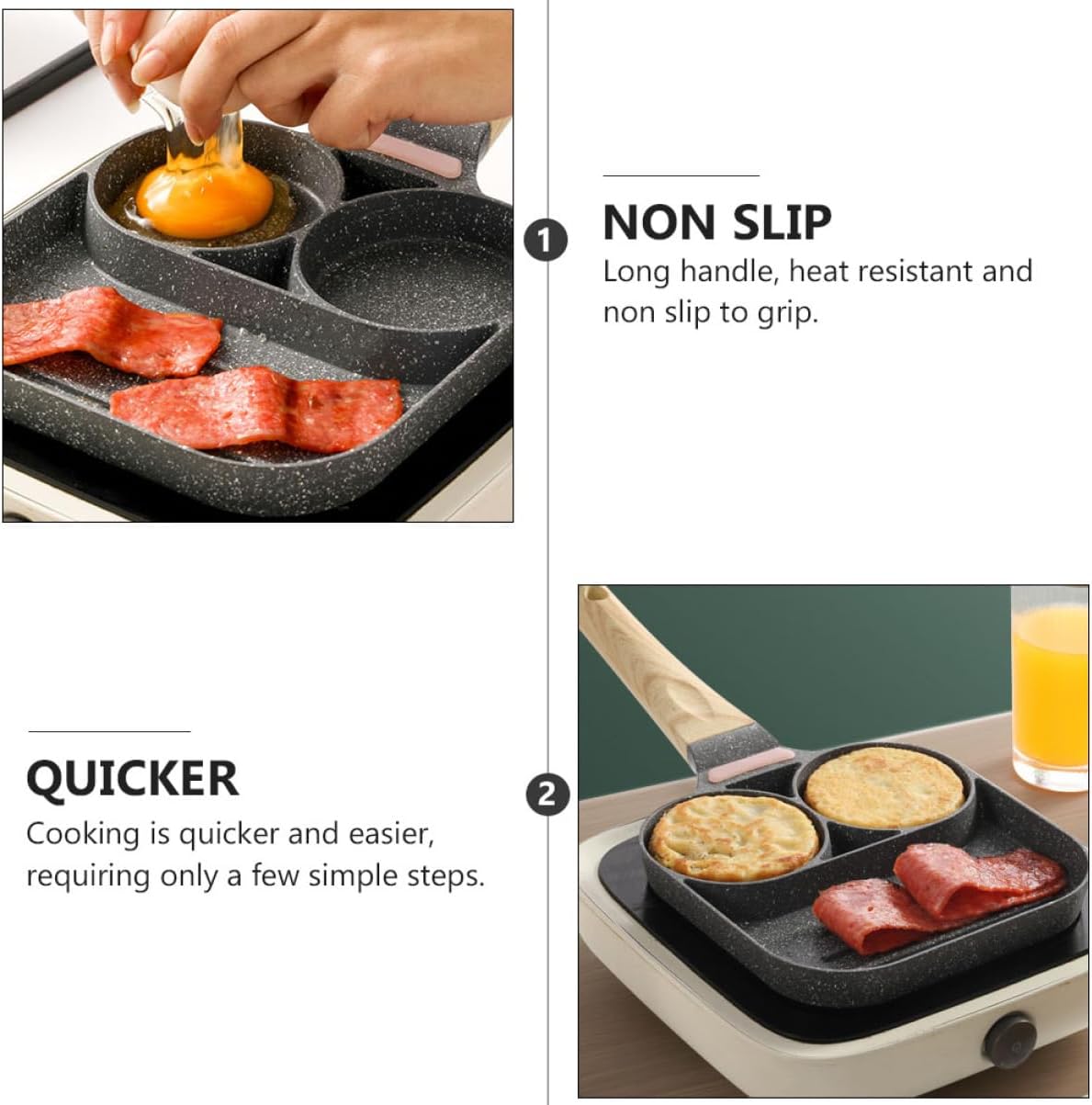 Package List 1 x Egg Frying Pan Characteristics - Material: Aluminum, Wood 3 Section Fried Egg Pan - Size: About 34.00X18.50X2.50cm/13.36X7.27X0.98in Breakfast Frying Pan - Color: Black Cooking Pot - The frying pan is suitable for all types of hobs, it’s compatible with both gas and induction cookers Pancake Frying Pan. - Divided compartments design, suitable for making omelets, steak, sandwiches, and pancakes, etc Fried Egg Pan. - Non-stick, very easy to clean, just use a sponge or cloth to remove oil stains easily frying pan nonstick. - A temperature- silicone strip on the pan, you can confirm the cooking steps according to its color change Kitchen Accessory. - The handle is made of wood, which has of heat insulation and protects you from being burnt Non-stick Omelette Pot.Goods InformationEgg Frying Pan The frying pan is of every kitchen.3-Compartment Frying Pan This item is made of , very practical in use, giving you a .Kitchen Accessory The non-slip comfort grip is designed for manipulating ease during cooking