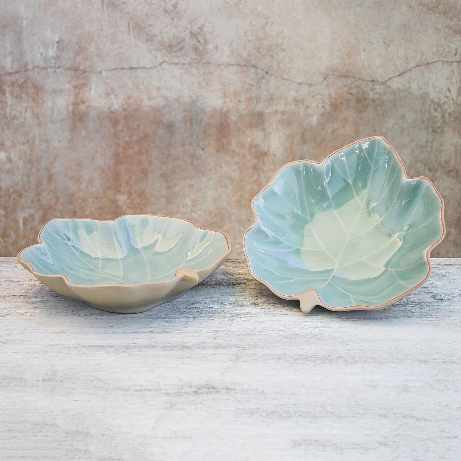 Novica works together with talented artists, artisans, and designers around the world to produce stunning, keepsake handmade treasures.About this item: Handcrafted of ceramic, two delightful ivy leaves make an excellent addition to your dining room or next get-together. Presented by Penpan, these serving bowls are finished with a crackled green celadon glaze.Microwave safeDishwasher safeFeatures a crackled finishHand-crafted item -- color, size and/or motif may vary slightlyFood safeAbout our Artist: My name is Penpan Wangviwat. I am the owner of a celadon ceramics workshop, which was founded in 1976 as a part of other family endeavors. My passion for nature and the traditional lifestyle that has surrounded me has helped me to discover the art of pottery with the charm of ancient ceramics, such as the unearthed celadon wares from Thailand's Sukothai period.Celadon is a name for an ancient Chinese innovation in ceramics discovered over 2000 years ago. I've been fascinated by the beauty of celadon ever since I was a student. At that time, I saw many famous traditional handicrafts, such as Thai silk, cotton, pottery, and wood sculptures.In 1976, my friend and I started a small ceramic workshop for crafting celadon ware. We didn't know much about the process at first but, by learning from some craftsmen from older generations, we studied and improved our techniques. We started with just one ceramic kiln and 10 assistants. Our first line of products included plates, bowls, mugs, vases, and small home decor pieces that we sold to local people and tourists.Our main strength is that we try to preserve the authentic celadon glazing mixture formula, which comes from two kinds of wood ash mixed with topsoil obtained from freshly harvested rice fields. The greenish color of celadon gives the each piece a glossy surface that is as beautiful as jade, without the use of chemical pigments.