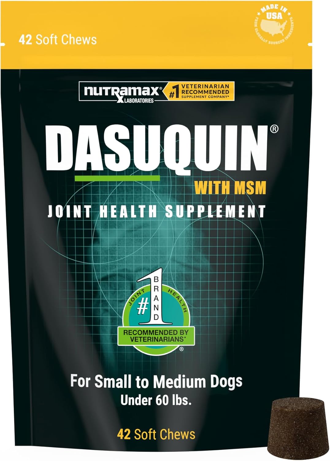 Dasuquin, the #1 veterinarian recommended joint health supplement brand◆, is a premium joint health supplement for dogs brought to you by Nutramax Laboratories Veterinary Sciences, Inc. It contains a patented combination of glucosamine hydrochloride (FCHG49®), sodium chondroitin sulfate (TRH122®), and ASU (NMX1000®) to help support your dog’s joints. Research shows that this synergistic combination of ingredients works better than glucosamine and chondroitin sulfate alone. Dasuquin is made in the United States with globally sourced ingredients. Subjected to rigorous quality checks that go beyond industry standards, Dasuquin is a trusted option to support your pet’s healthy joints. Nutramax Laboratories Veterinary Sciences, Inc. is the #1 veterinarian recommended supplement company*, has been a leader in pet health for over 25 years, providing supplements to support joint health, digestive health, skin and coat health, calming, and more. ◆Source: Among veterinary brands. Survey conducted among small animal veterinarians who recommended oral joint health supplements. *Source: Survey conducted among small animal veterinarians who recommended animal supplements.