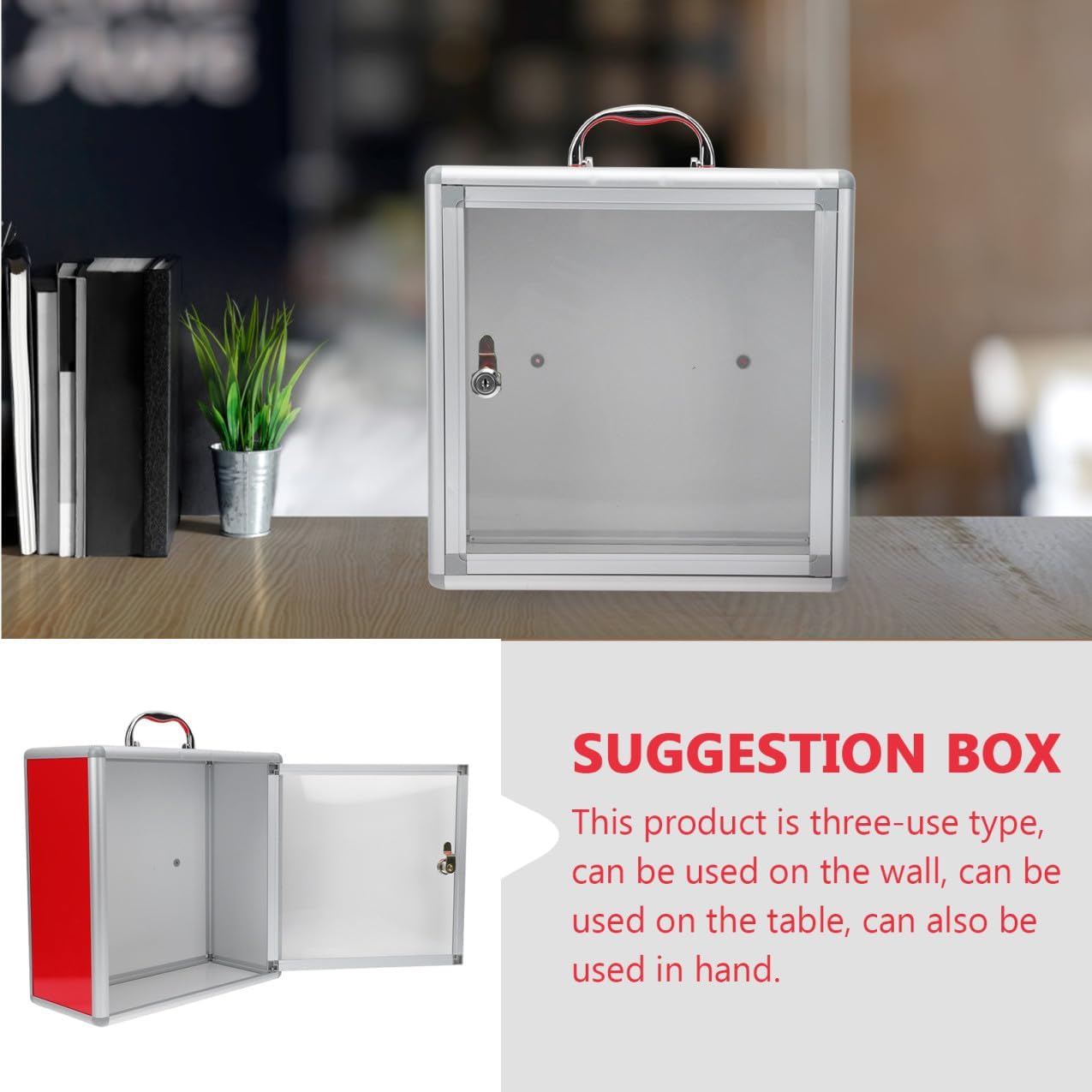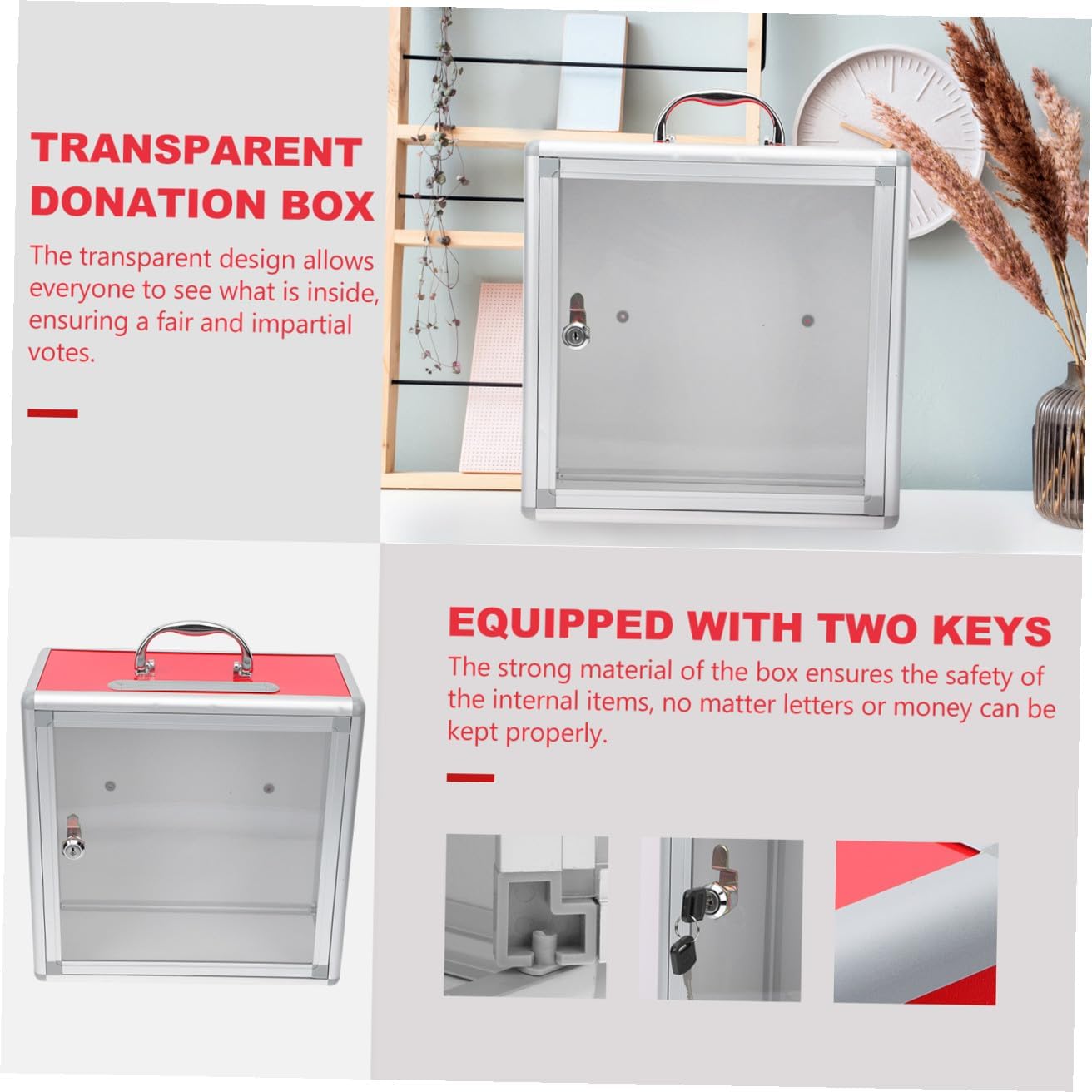 Package List 1 x Storage Box 2 x Keys Features -Material: Aluminum Alloy Small Mailbox -Color: Silver, Red, Transparent Metal Mailbox -Size: 32.00X32.00X16.00cm/12.58X12.58X6.29in -The color of the box makes it is also a nice fundraising box for collecting love donation Lockable Mailbox. -Made from superb materials, safe and . Widely used for office, factory, school, work unit, etc Collection Container. -Can help keep the confidential information of mail and complaint suggestion Storage Container. -The appearance design of the product is simple and generous, you can use it in many places Letter Storage Container. -You can put many mails and letters what you need due to the large capacity.Goods InformationStorage Container Constructed with strong aluminum alloy, thismailbox provides convenience and security for complaint suggestion, mails, letters, interoffice mail and much more.Collection Container What's more, it is lockable that ensure the letter will not be stolen