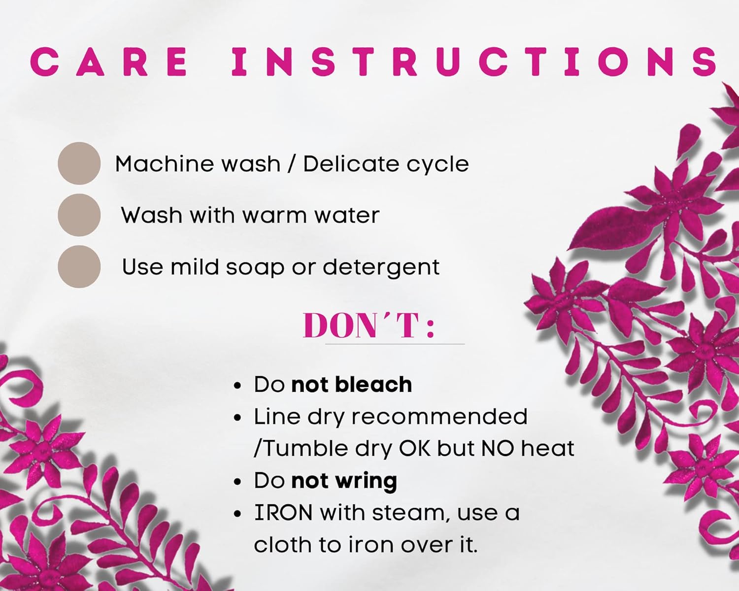 No chemical odor, Easy ironing, Made by Mexican artisans, Elegant and cozy. UNIQUE EMBROIDERY! Unlike other table runners our product is 100% hand-embroidered, you will not only support woman's comunity but also you will receive an authentic handmade table runner that symbolyzes womens empowerment, freedom, independence, traditions and art support! CARE INSTRUCTIONS: Hand wash recommended (Machine wash with like colors OK delicate cycle) Do NOT wring Air dry Recommended or Tumble dry. NO DRYER HEAT, when use it will shrink! Mild soap or detergent Do not bleach IRON with steam or using a humid cloth over the table runner. You risk absolutely nothing. Our table runners are backed by an unconditional 100% satisfaction, no-nonsense money back guarantee. Your search for THE PERFECT table runner is finally over! You can trust that Amazon customers agree. We have limited supply of this best selling product. Grab yours today from Amazon.com exclusively.