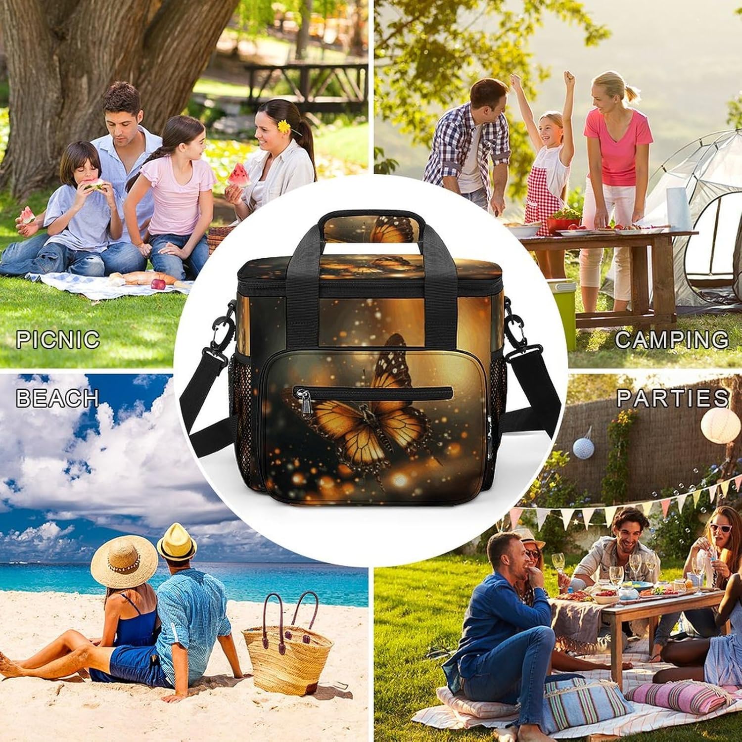 When you're looking for a reliable way to keep your food and drinks fresh while on the move, our Orange Butterfly insulated cooler tote is the perfect solution. Made from high-density Oxford cloth with an upgraded aluminum foil lining, it offers superior insulation that maintains the temperature of your items for hours. The leakproof design ensures no messy spills, and the sturdy construction means it can handle the rigors of daily use, whether you're commuting to work or heading out for a weekend camping trip.The 22.5L large capacity provides ample space for all your essentials, from sandwiches and salads to cans of soda and bottles of water. The comfortable 66cm straps make it easy to carry, and the compact vertical design doesn't take up unnecessary space in your car or backpack. Whether you're packing a meal for the office, preparing for a family picnic, or stocking up on groceries, this cooler bag has you covered.Forget about flimsy coolers that fall apart after a few uses or fail to keep your food fresh. Our reusable cooler tote combines practicality, durability and style in one package. Its neutral design works for everyone, and its versatility makes it a must-have accessory for anyone with an active lifestyle. Invest in a cooler bag that meets all your needs and simplifies your on-the-go eating experience. Lightweight Cooler Bags Oxford Cloth Cooler Bags Ice Packs Reinforced Handle Ice Chest Cooler Bag Tote Cooler Bag Versatile Cooler Bags Portable Insulated Cooling Everyday Cooler