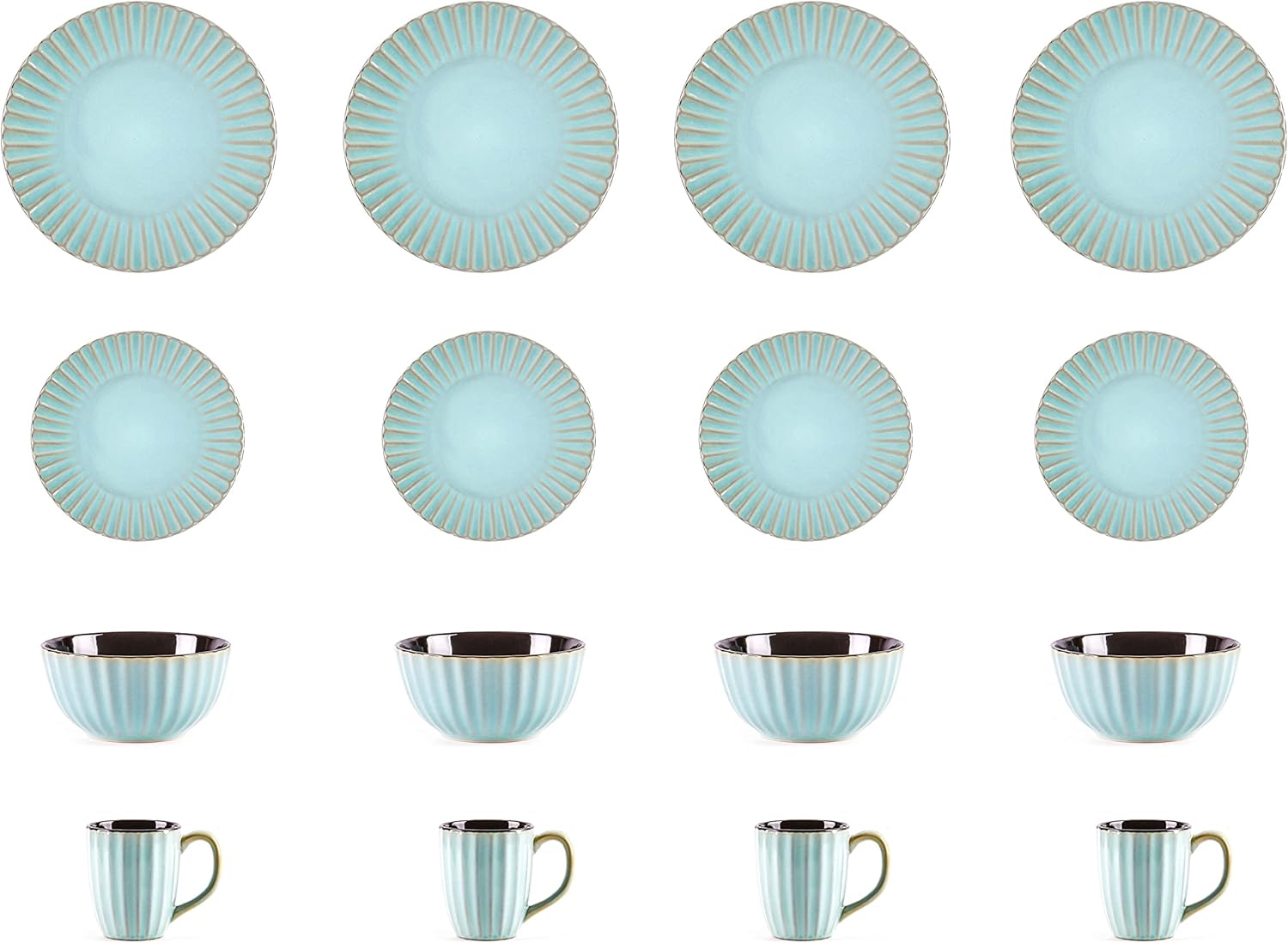 16pc Set: Service for 4, Including 4 of each of the following: Dinner Plate 10.5", Salad Plate 8", Deep Soup/Cereal Bowl 6", Mug 15oz