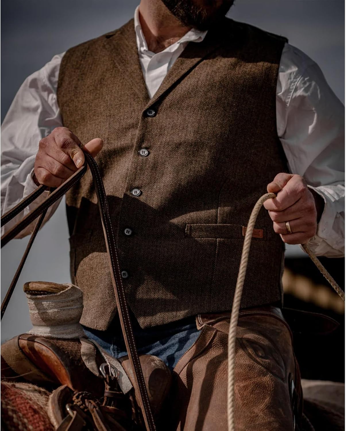 | Style | Lightweight Button Down Wool Western Outdoor Vest With Adjustable Back Slide Belt |