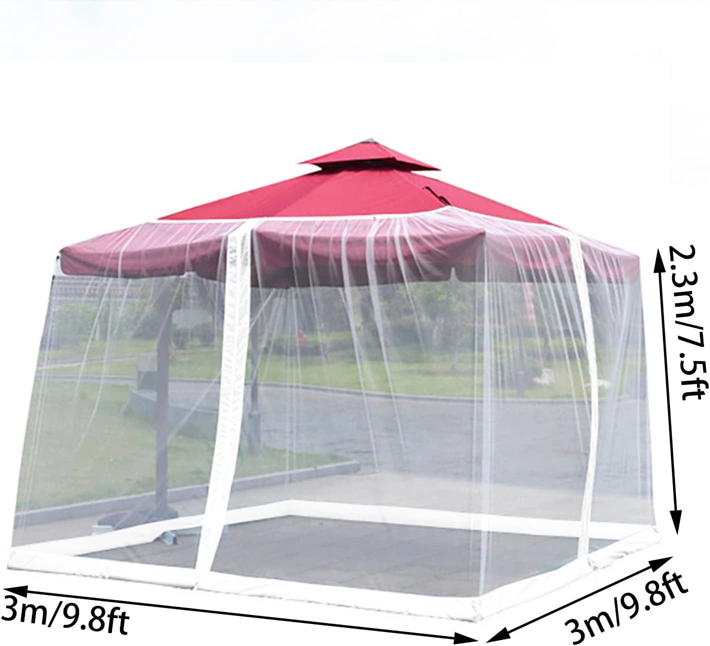 🌙No longer plagued by mosquitoes. Keep out mosquitoes and other pesky insects. you can rest easy, the extra fine mesh fabric serves as a protection. Hexagon mesh design made for maximum breathability yet impenetrable by pesky mosquitoes, insects and other bugs.This patio umbrella mosquito netting suits almost all market umbrellas range from 7.5 FT to 10 FT (2.5m-3m) canopy diameters umbrellas. Drawstrings at the top make it adjustable to fit the umbrella canopy.Fillable tubes and the bottom provides weight to hold the net in place in windy environments. Help you fully enjoy your patio time with family and friends.🌙Product Details:Sizes: (Φ)3m x (H)2.3m /(Φ)9.8ft x (H)7.5ftColor: White,BlackWeight: 2(kg)/4.4(lbs)Material: Oxford fabric/polyesterApplicable: 7.5 FT to 10 FT (2.5m-3m) canopy diameters umbrellas🌙Package Including:1*mosquito netting🌙Note:1.The products are all manually measured, there are small gaps, please refer to the actual product.