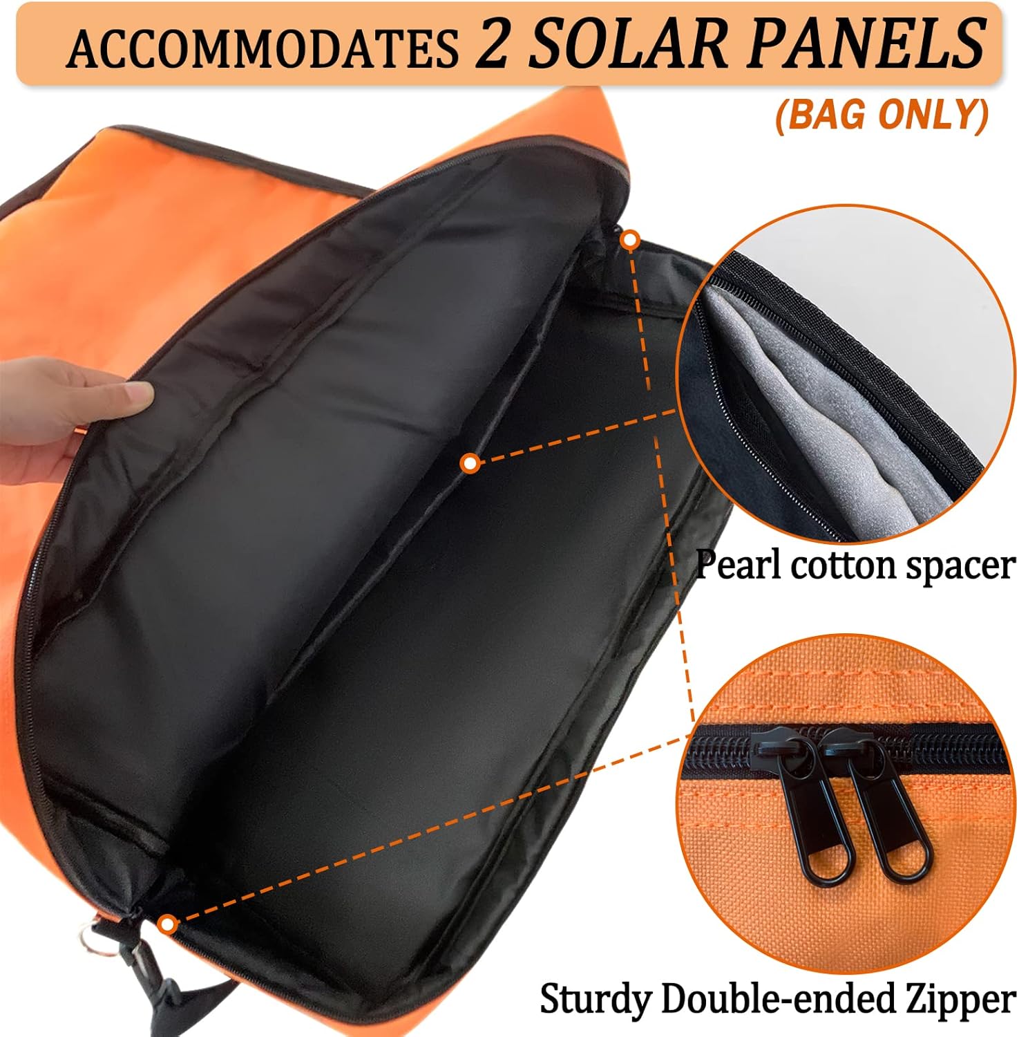 Padded Utility Solar Panel Bag,for Jackery 100 watt Solar Panel,Double Layer Design, Can Hold 2 Battery Panels,Orange