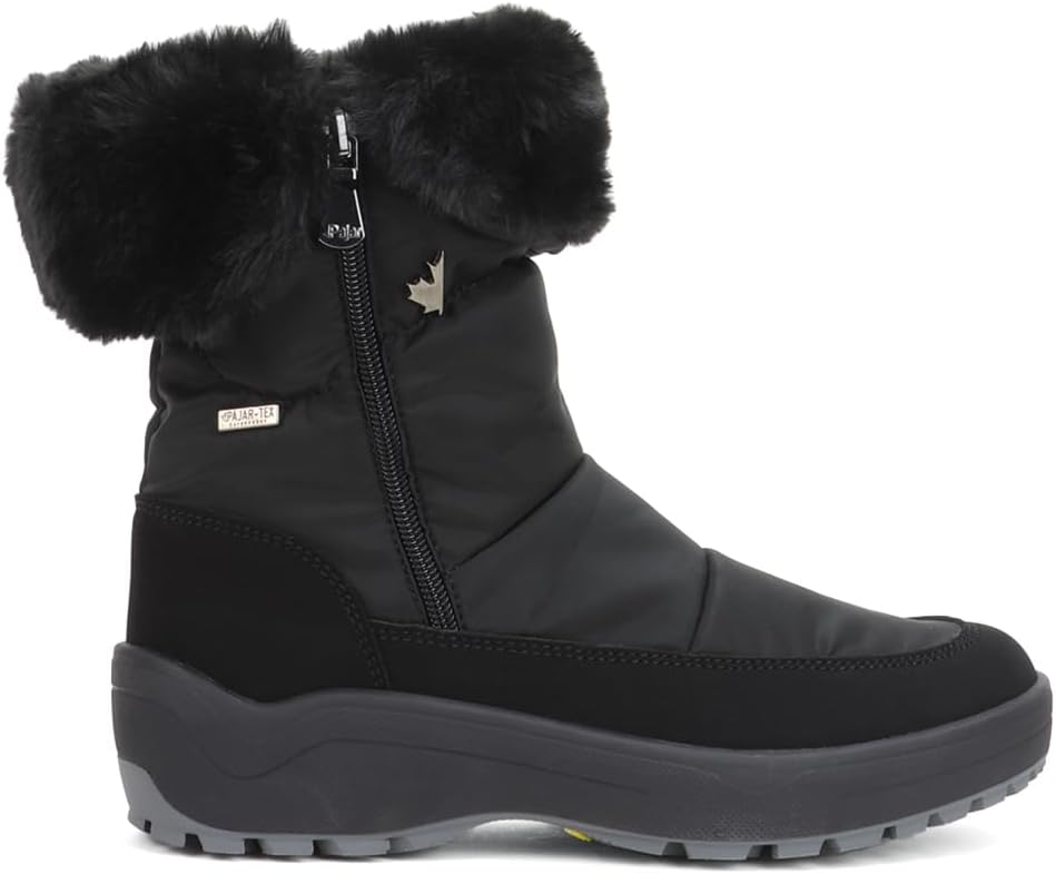 PAJAR CANADA VALENTINA Make a statement in the snow with the Valentina boot, crafted with a nylon and faux fur upper for a bold yet functional design. Seam-sealed and equipped with the PAJAR-TEX waterproof membrane, these boots are comfort-rated to -30°C. The removable ultralight insole adds comfort, while the Ice-Gripper technology outsole provides superior traction for icy conditions.