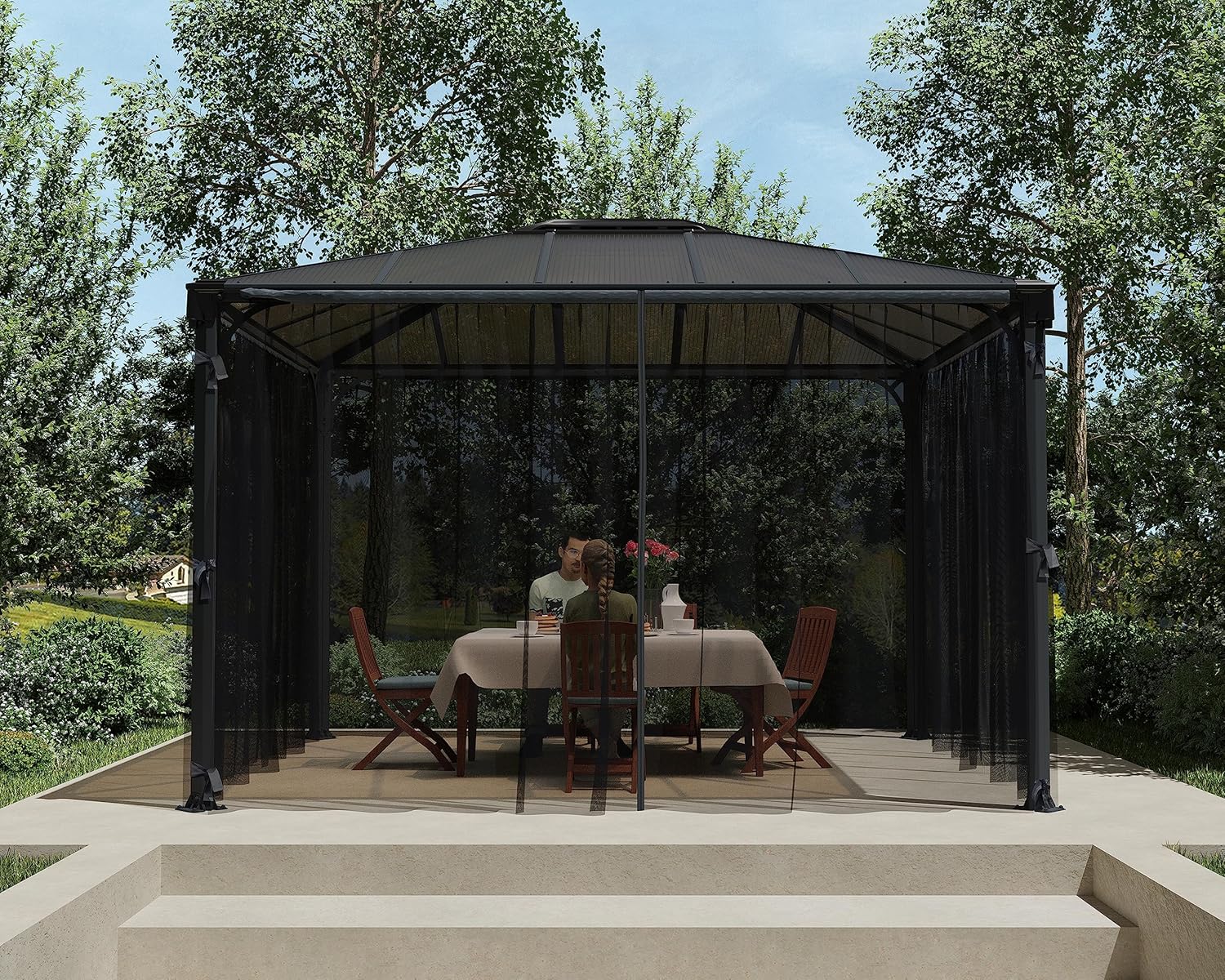 Product Description The Palermo and Milano Gazebo Netting Set will add to you comfort by keeping out unwanted bugs. The lightweight polyester screen comes with hangers that slide into the track line of your Gazebo. Fits the Palermo 10x10 and 12x12 Gazebos and also fits the Milano Gazebo. One package has four sets of screens to cover your entire Gazebo. Easy to install and easy to use. Includes zipper to connect the screens together and ties to pull the screens to the corner posts. Manufacturer Contact Information 877-627-8476