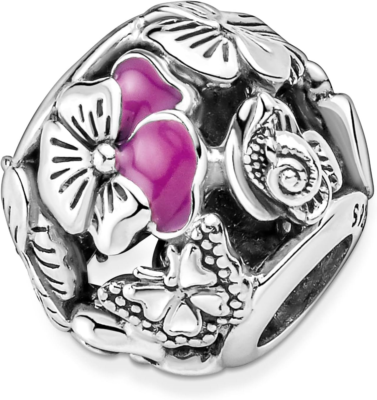 Discover a spring garden filled with fresh flowers and sweet creatures in our Pansy Flower Friends Charm. This sterling silver charm features three hand-painted enamel pansies and intricate engraving. Look closely and you'll see the hidden snail and butterfly making their home in our pansy patch. Wear yours as a reminder of all the loved ones in your life and style it with other pieces from our pansy collection for a coordinated look.