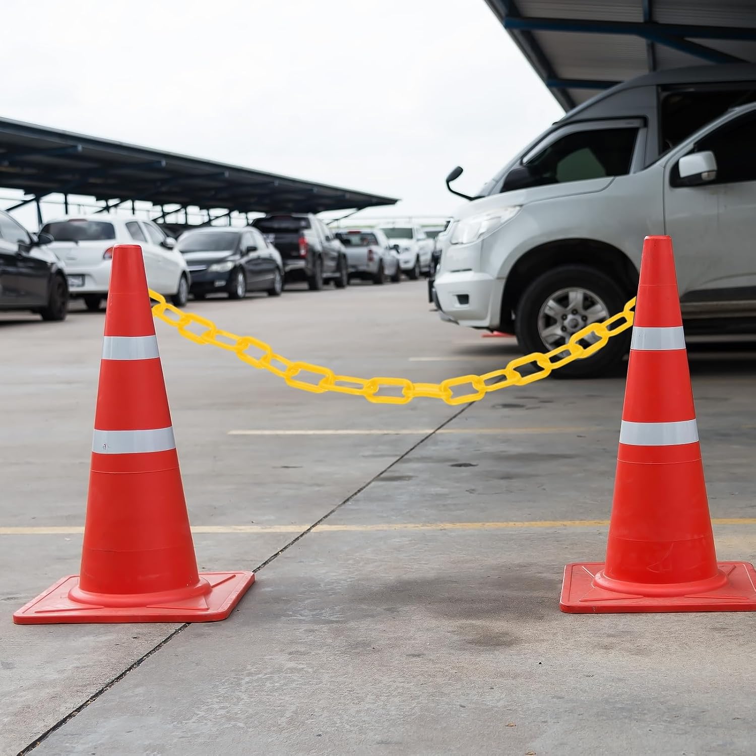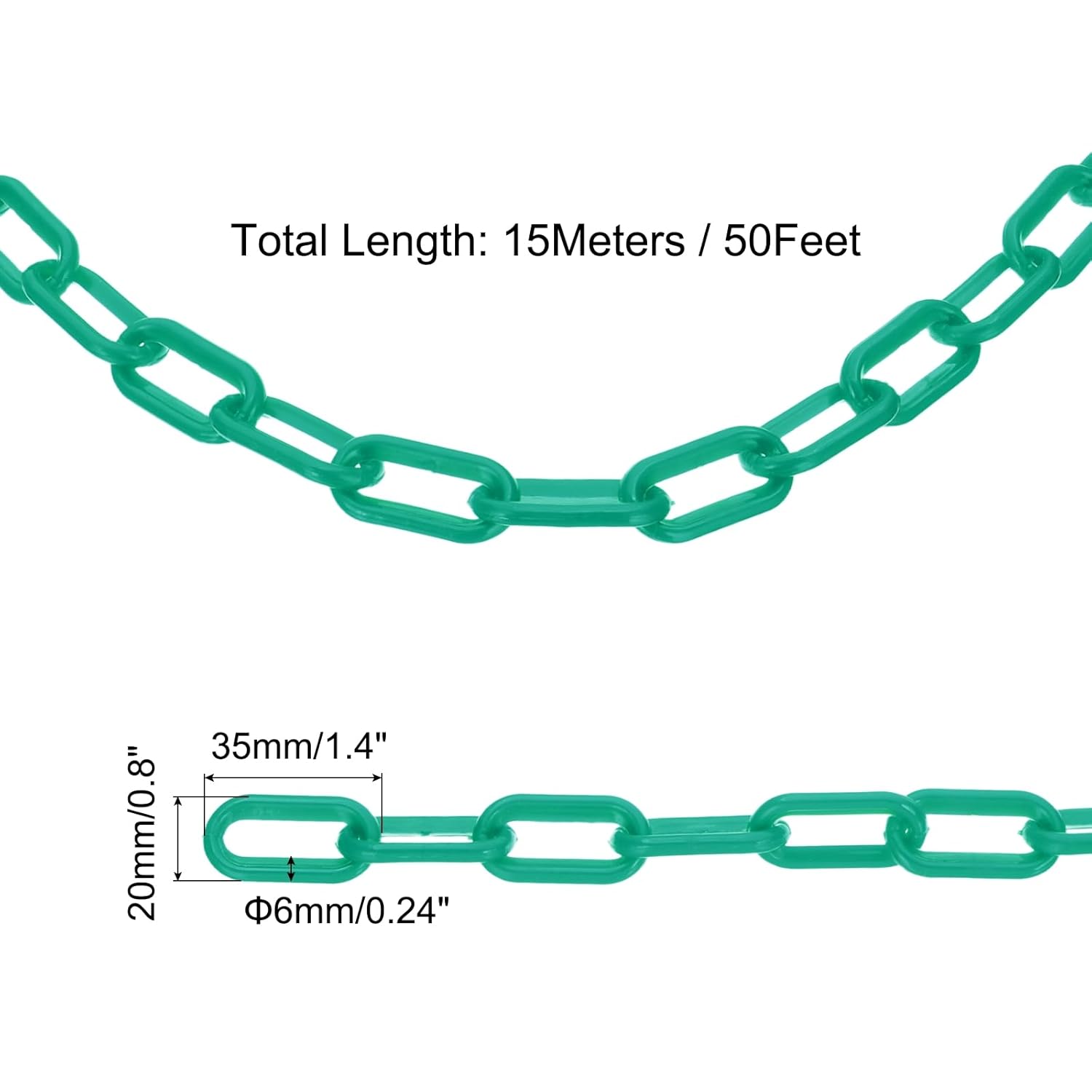 The chain safety barriers can be easily attached to posts, poles, or other structures to create a secure and effective barrier. It is suitable for traffic control, safety barriers, crowd control, and industrial safety, including construction sites, parking lots, festivals, and events, making them a practical and essential tool for any business, organization, or event.SpecificationColor: RedMaterial: PPDiameter: 6mm / 0.24 inchOverall Size: 35 x 20mm / 1.4 x 0.8 inch(L*W)Total Length: 152Meters / 500FeetPacking List: 1Pcs x Stanchion ChainAdvantageDurable material: It is made of quality, weather-resistant PP material, ensuring a long-lasting and reliable performance for both indoor and outdoor use. This makes it a great choice for use in high-traffic areas such as airport, train stations, and shopping centers.Bright and visible colors: The barrier chain comes in bright and visible colors, making it easy to create clear boundaries and visual cues for crowd control, traffic management, and more.Lightweight and portable: It is lightweight and portable, allowing you to move it with ease, ensuring a flexible solution for your crowd control needs.InstructionThe chain barriers are designed to be easily attached and removed, allowing you to customize the length of your barrier as needed. Simply tie the ends of the chain to posts or other sturdy objects using zip ties or other fasteners.NOTE: Install the barrier using sturdy posts that are designed to support the weight of the chain. Ensure that the posts are positioned at regular intervals to prevent the chain from sagging.