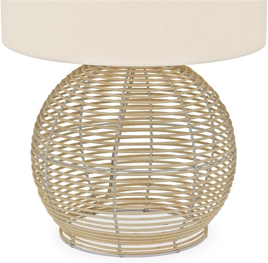 An intricate hand crafted natural rattan base is the main focal point of this ruggedly beautiful lamp. Simple in its silhouette, this piece puts the attention on the natural appeal of the materials and the quality of craftsmanship. The woven details of this wicker lamp create a cohesive look perfect for a modern yet coastal inspired space.Features:- The base of the lamp is made from a fine wooden rattan.- Material: Woven Rattan, Metal and 100% linen with polystyrene lining- The base of the lamp is made from a fine wooden rattan- The shade is in a crisp chiffon color and is made of 100% linen with polystyrene lining for durability- Premium materials have been used in the making of this product- Rated for one 60W max. light bulb with E26 (medium) base (not included)- Fits seamlessly in any space- Clean with a soft, dry cloth; no harsh chemicals or abrasive cleaning materials- Cord: Clear and 6 ft.Specifications:- Product Weight: 2.75575 lbs- Frame Material: Wood