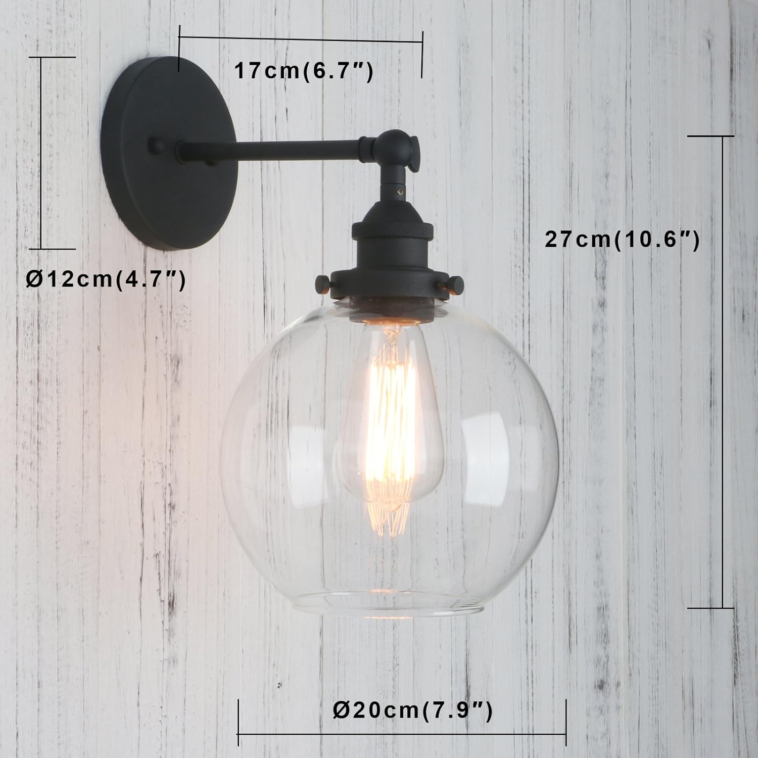 • Features a swivel for easy arm adjustment and a 7.9" clear glass globe shade.Can be mounted the shade with bulb facing upwards or hanging downwards. It also can be mounted on the ceiling and hung vertical as a flush ceiling.