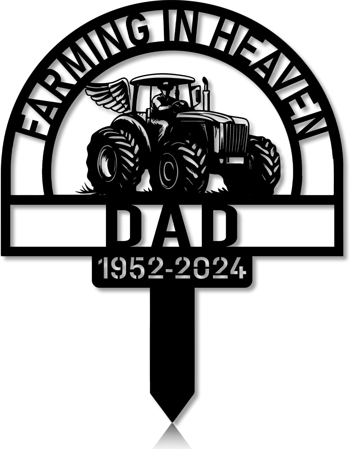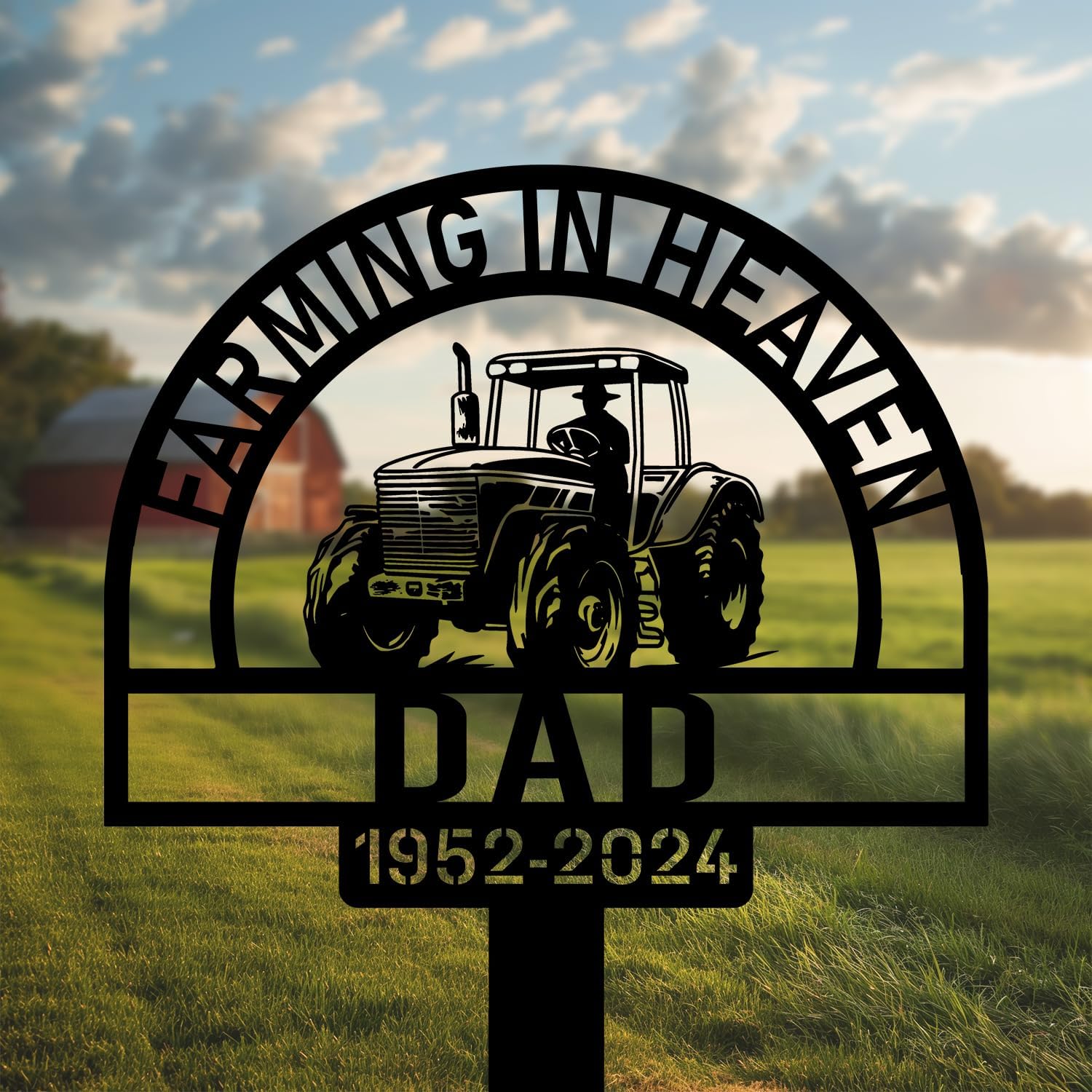 Honor a cherished grandpa or dad with this personalized grave marker, featuring a design of a farmer on a tractor in a "Farming Heaven Field" setting. Available in sizes from 8 to 24 inches, this durable and elegant garden stake captures the essence of a farmer’s love for their work and the land. Ideal for a cemetery or memorial garden, it provides a meaningful and comforting tribute, making it a heartfelt sympathy gift during a time of loss.