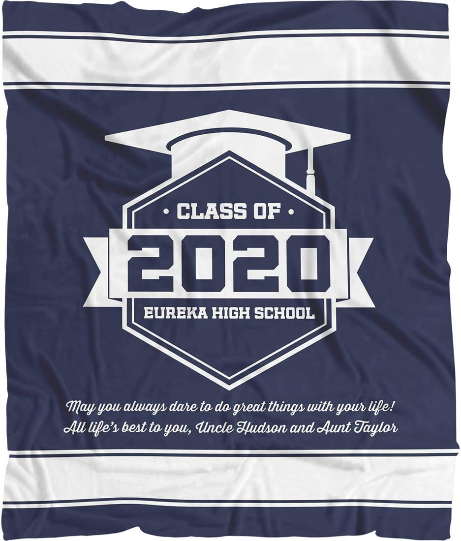 Personalized Cap Graduation Blanket, Custom Class Year Congratulations Decorations Gift For Him Her Men Women. Phd Doctoral College Graduation Gifts For Cousins Best Friend This blanket is exactly what you want to gift someone for graduation, a great Congratulations gift to share the joyful. With the design of graduation cap, it's a wonderful gift for your family members, son, daughter or your boyfriend, girlfriend.2 sizes are available with 2 types of materials, 4 colors for option. Fleece and Sherpa are soft and washable with washing machine.100% Satisfaction. Your satisfaction is our ultimate goal.If you have any question, just click on the "Contact Seller" buttonor leave your question into "Customer Questions & Answers".