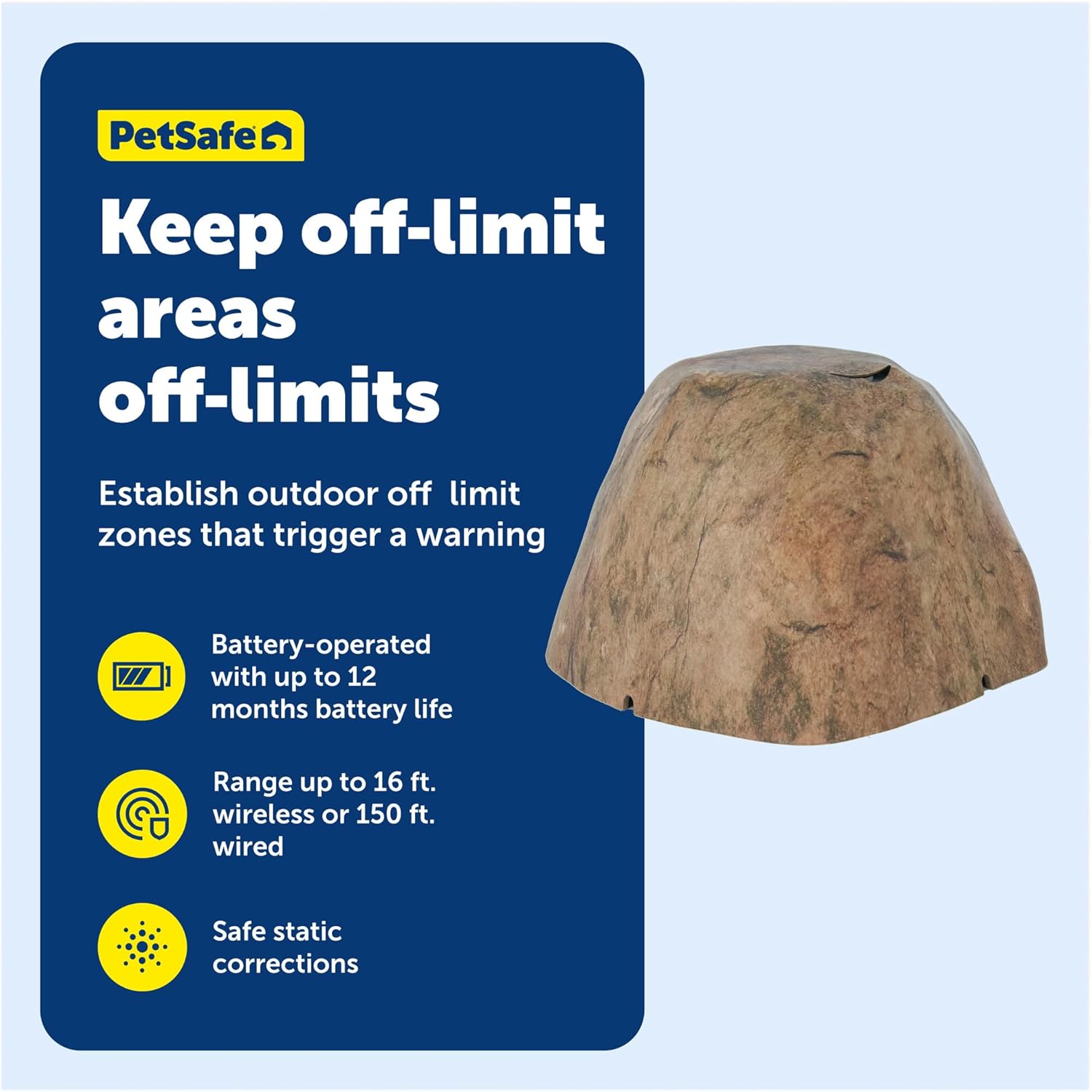 The PetSafe Pawz Away Mini Pet Barrier is the smart, effective solution for keeping your pets away from off-limit areas inside or outside your home. This easy-to-use pet habit correction device helps teach dogs and cats which spaces are restricted, such as the trash can, flower beds, furniture, or kitchen counters, so you can maintain a clean and safe environment. Setup is simple: just place the mini barrier in the spot you want to protect and secure the lightweight receiver collar around your pet’s neck. When your pet approaches the restricted zone, they'll hear an audible beep warning them to stop. If they continue, the collar delivers a mild yet effective static correction, encouraging them to turn away. This system uses a scent free correction method, making it a great alternative to sprays or barriers. For added peace of mind, the collar features an auto shut off safety system, which stops correction after 15 seconds. Designed for dogs and cats 5 lb and up, the adjustable collar fits neck sizes from 6-28 inches and includes an extra strap for cats. The barrier is fully wireless and waterproof, making it perfect for both indoor and outdoor use. The compact design acts as a portable dog cat zone blocker, allowing you to protect multiple areas by adding extra Pawz Away barriers. It’s powered by three AAA batteries (not included) for long-lasting performance. Since 1988, PetSafe has been driven by a simple belief: safe, healthy pets lead to happier lives for pets and their families. For over 25 years, we've been dedicated to enhancing the lives of pets and the people who love them, treating every pet as a cherished family member and delivering life-changing innovations designed to enrich every moment. With U.S. roots and a global reach, our vet- and trainer-recommended products are built for every pet and backed by exceptional customer support. From backyards to dog parks, we're on a mission to create fields of joy for happy, healthy, and safe pets.