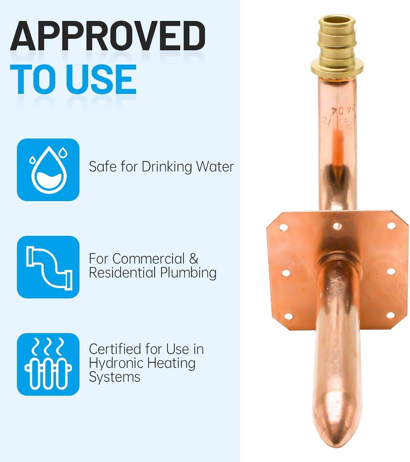 PEX-A copper elbow with wall flange for plumbing,1/2" x 6" F1960 Certified