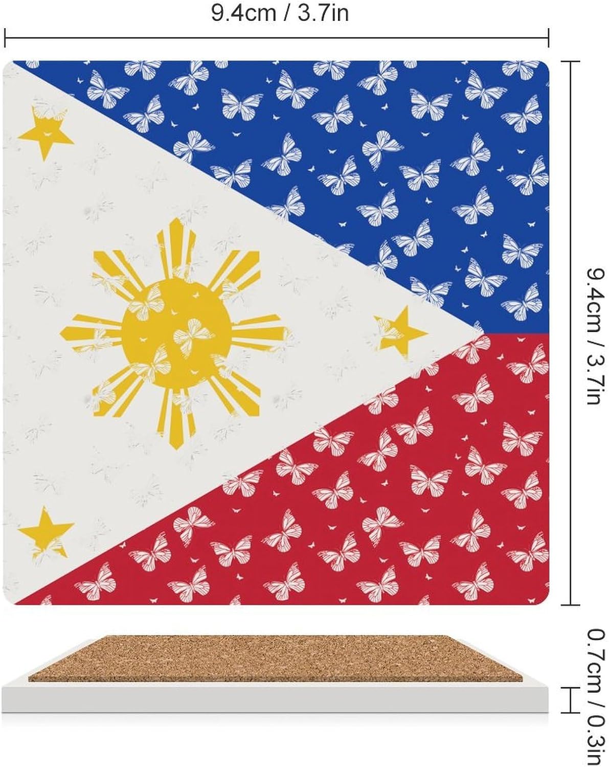 Philippines Flag Coaster for Drinks Square Ceramic Table Coasters Stone Mat Crafts 4PCS Home Kitchen Decor